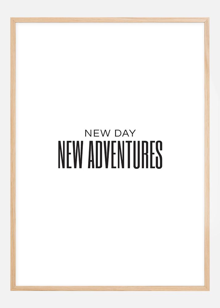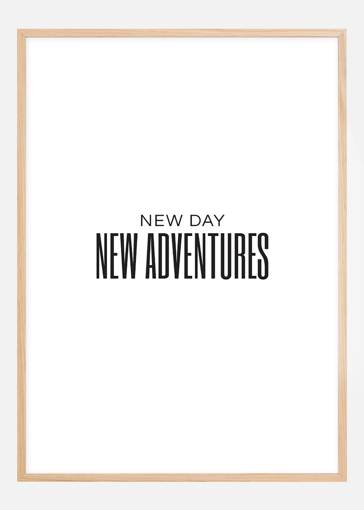 Un poster simple et épuré avec de grandes majuscules et le message "New day, New adventures". Les posters textuels sont parfaits pour intégrer dans de plus grands collages et murs de cadres. N'hésitez pas à compléter avec quelque chose de notre large assortiment de cadres.