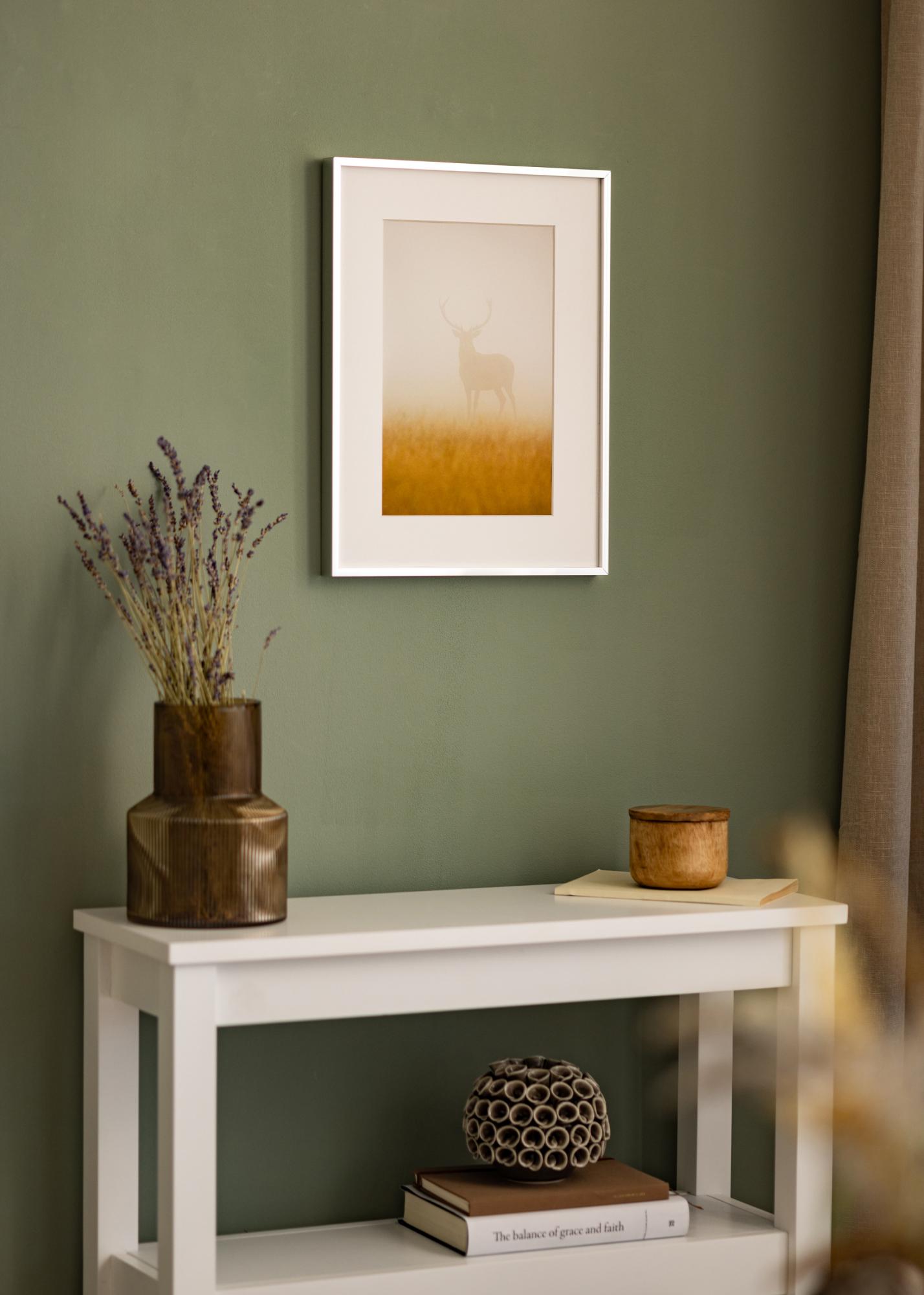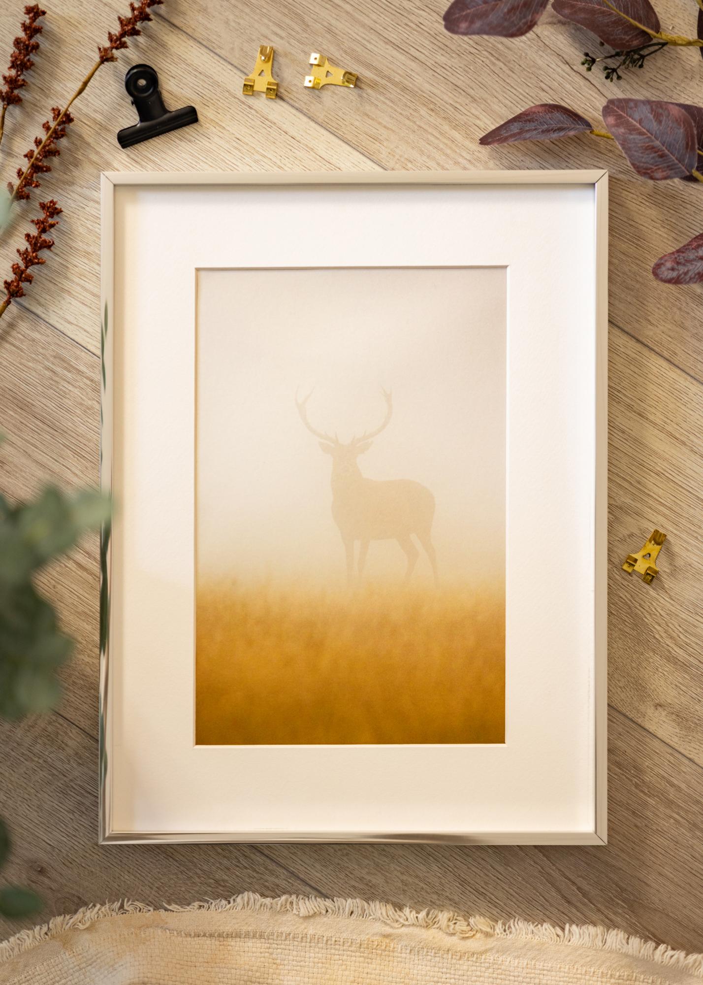 Élégant cadre photo argenté brillant de haute qualité fabriqué en Allemagne, doté d'une baguette d'encadrement fine en aluminium. Le design minimaliste de ce cadre le fait s'intégrer dans un intérieur au style dépouillé et sa discrète couleur gris clair argenté convient tout aussi bien pour encadrer des photographies que des posters. Le grand choix de formats rend ce cadre parfait à utiliser dans un collage de tableaux que vous voulez lier par le choix du modèle de cadre.