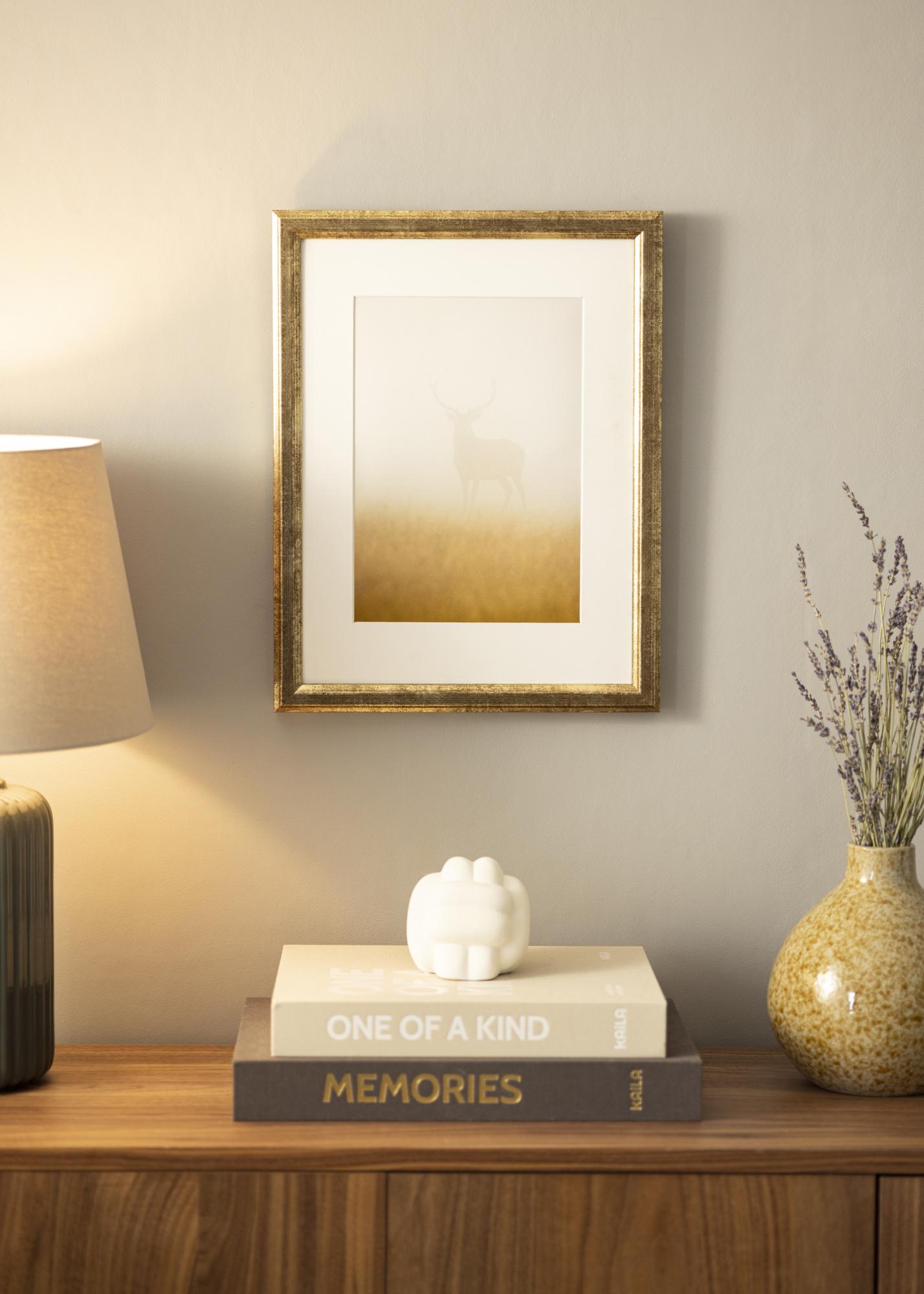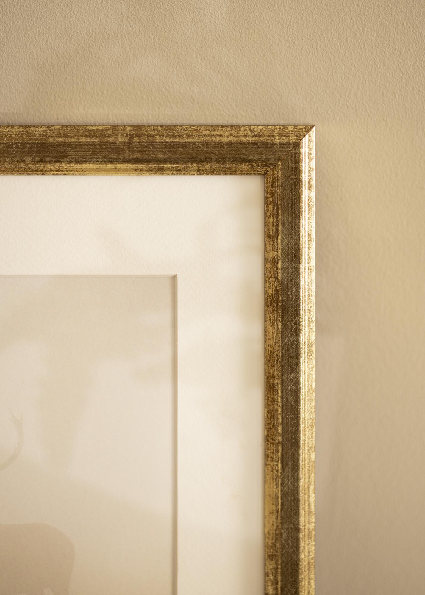 Cadre Nyhyttan Or Antique est un cadre photo élégant et polyvalent fabriqué dans notre propre atelier de cadres. Avec sa couleur or élégante et sa finition patinée antique, ce cadre offre une structure discrète qui donne une sensation rustique. La finition usée est combinée avec des bords élégants pour créer un encadrement intemporel, parfait pour les œuvres d'art et les photographies avec un caractère classique ou vintage.