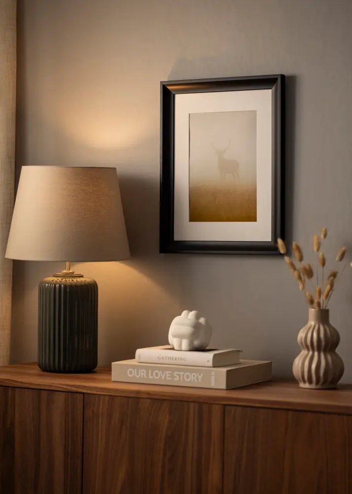 Si vous êtes à la recherche d'un cadre noir large (34 mm), Öjaren est un excellent choix. Avec son profil incurvé en noir, le cadre donne une impression d'exclusivité qui lui assure d'être remarquée et de se démarquer. Le cadre est fabriqué en Suède par la Galleri1, ce qui garantit une qualité supérieure.