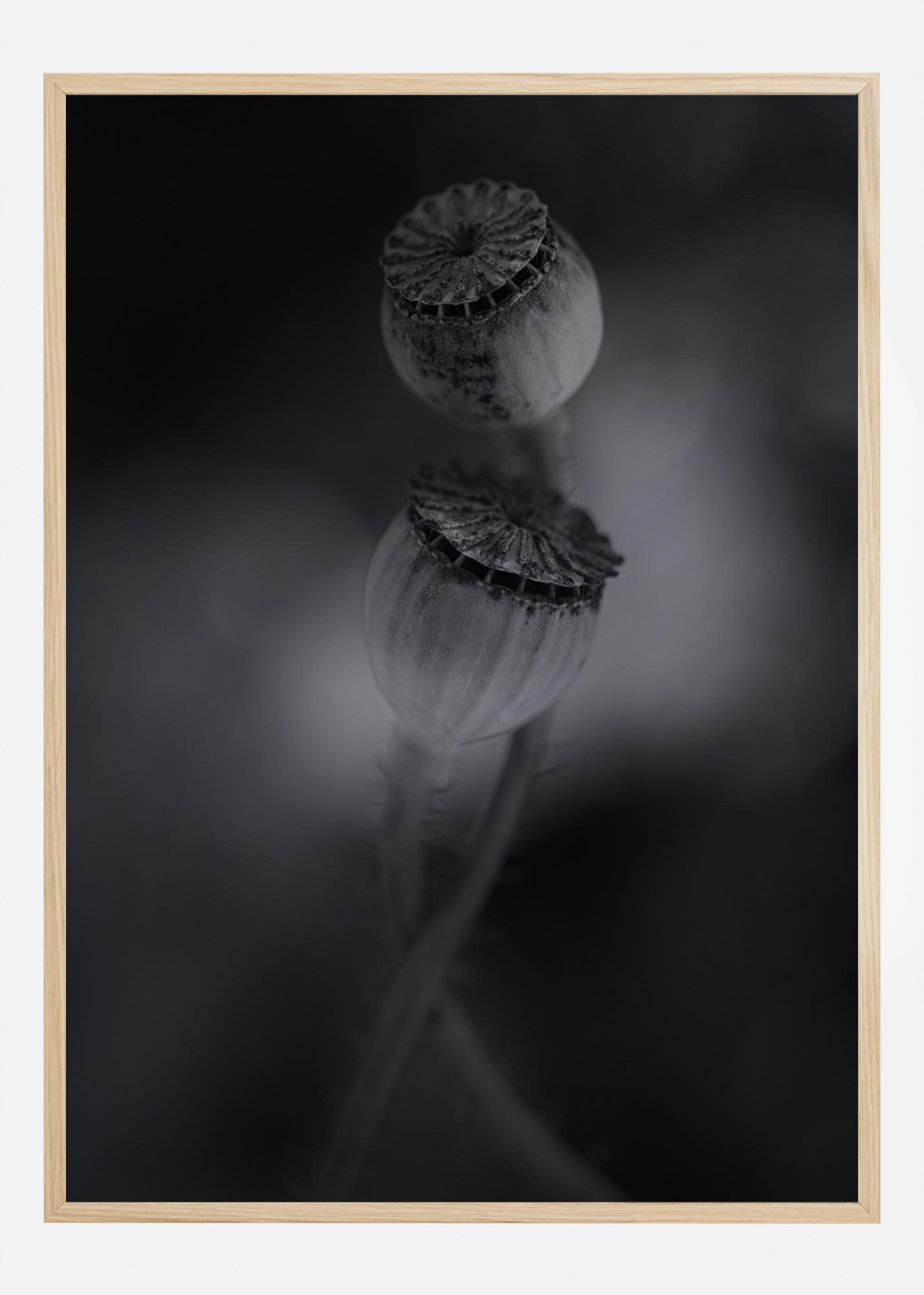 Une incroyable affiche en noir et blanc en gros plan de deux coquelicots anciens. Entrelacés l'un avec l'autre, les deux vieux coquelicots se tiennent seuls. La lumière naturelle crée un fond noir flou, tout en mettant en valeur la beauté des coquelicots. Ajoutez une touche de tranquillité dans votre intérieur avec ce tirage.