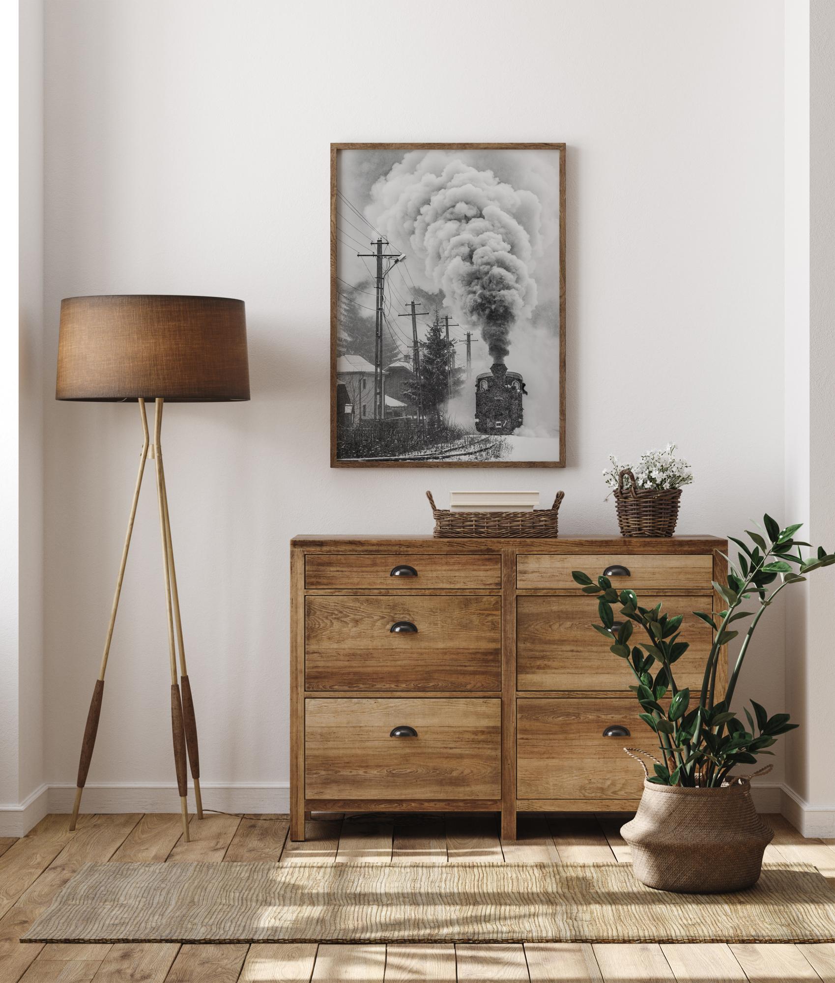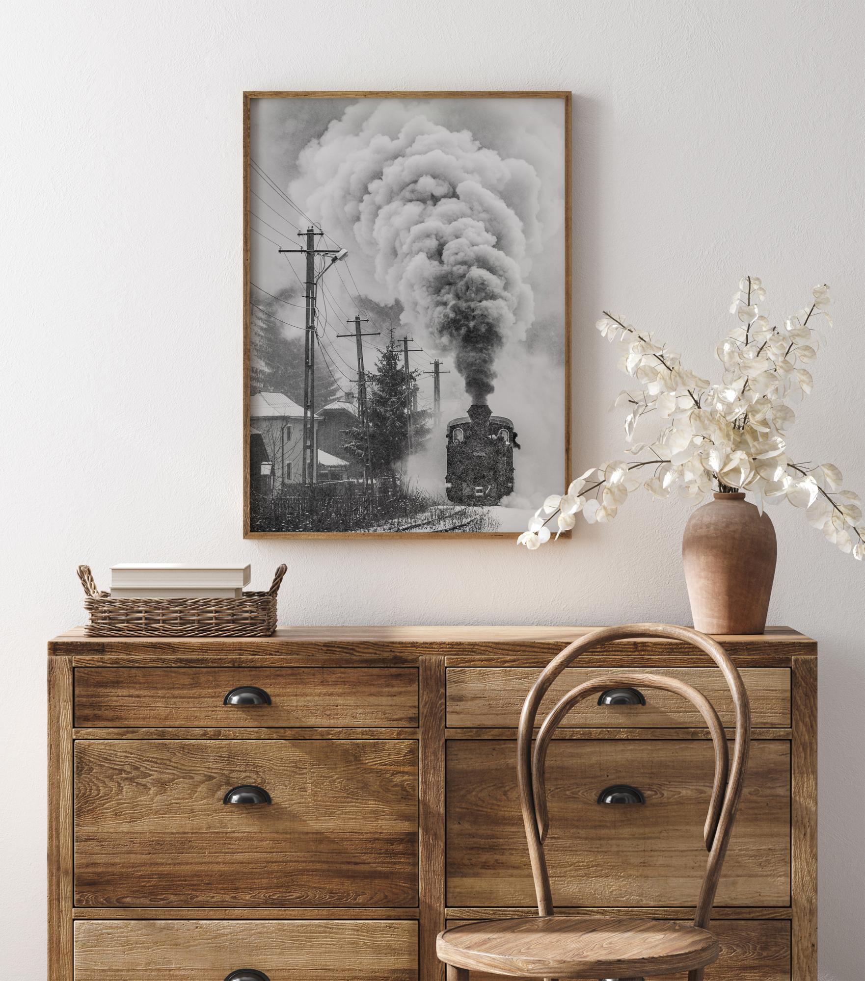 Une superbe affiche d'un train à vapeur dans la neige. Laissez-vous emporter par le caractère épique de ce cliché où la fumée s'élève. Créez l'ambiance de Noël en ajoutant ce poster à votre intérieur.