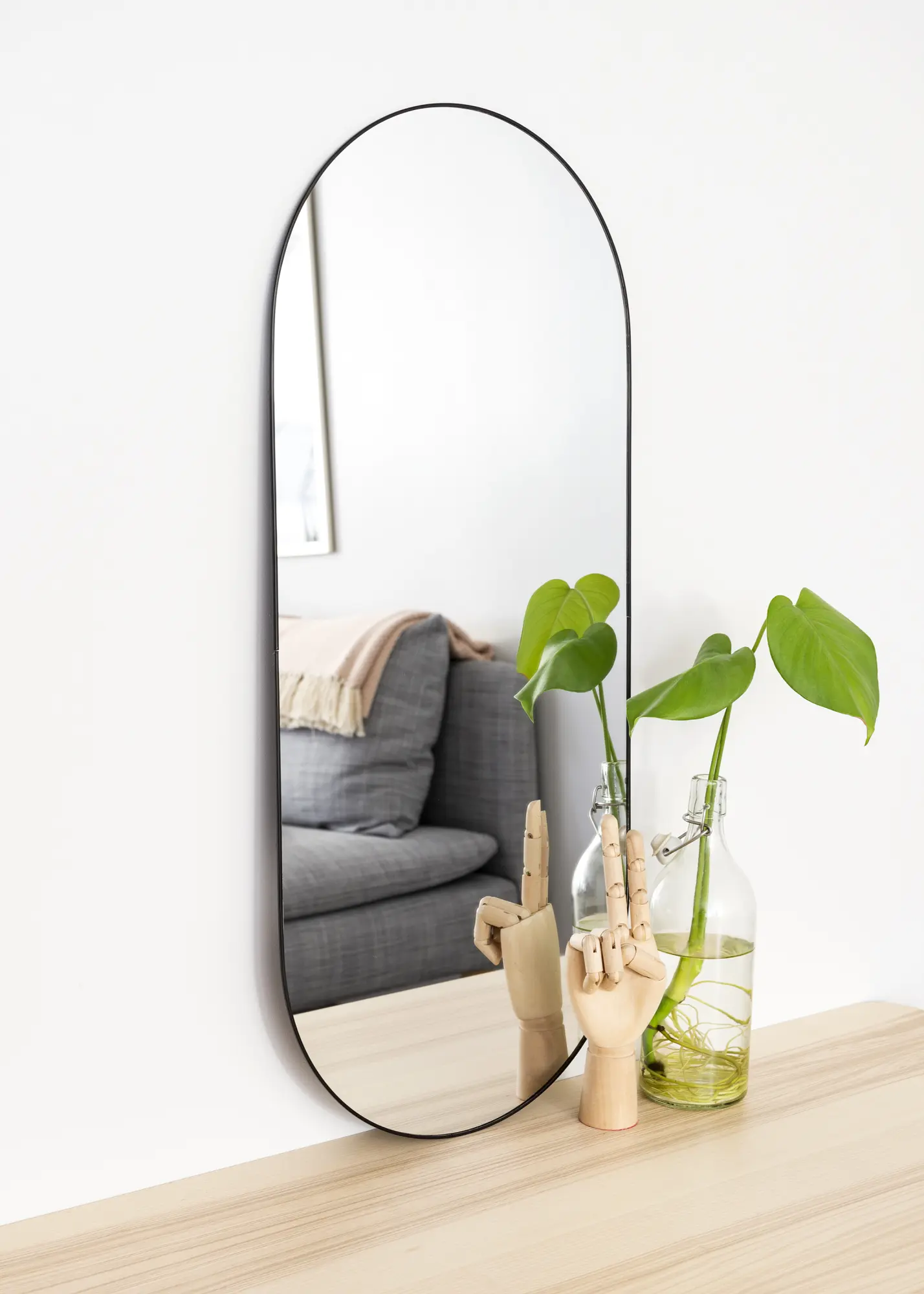 Le brut rencontre le doux dans ce miroir intéressant et très épuré du KAILA. Le bord fin en métal noir donne au miroir une sensation industrielle, tandis que sa forme ovale lui donne une impression douce et élégante. C'est un miroir tendance qui se démarque de manière très sophistiquée.