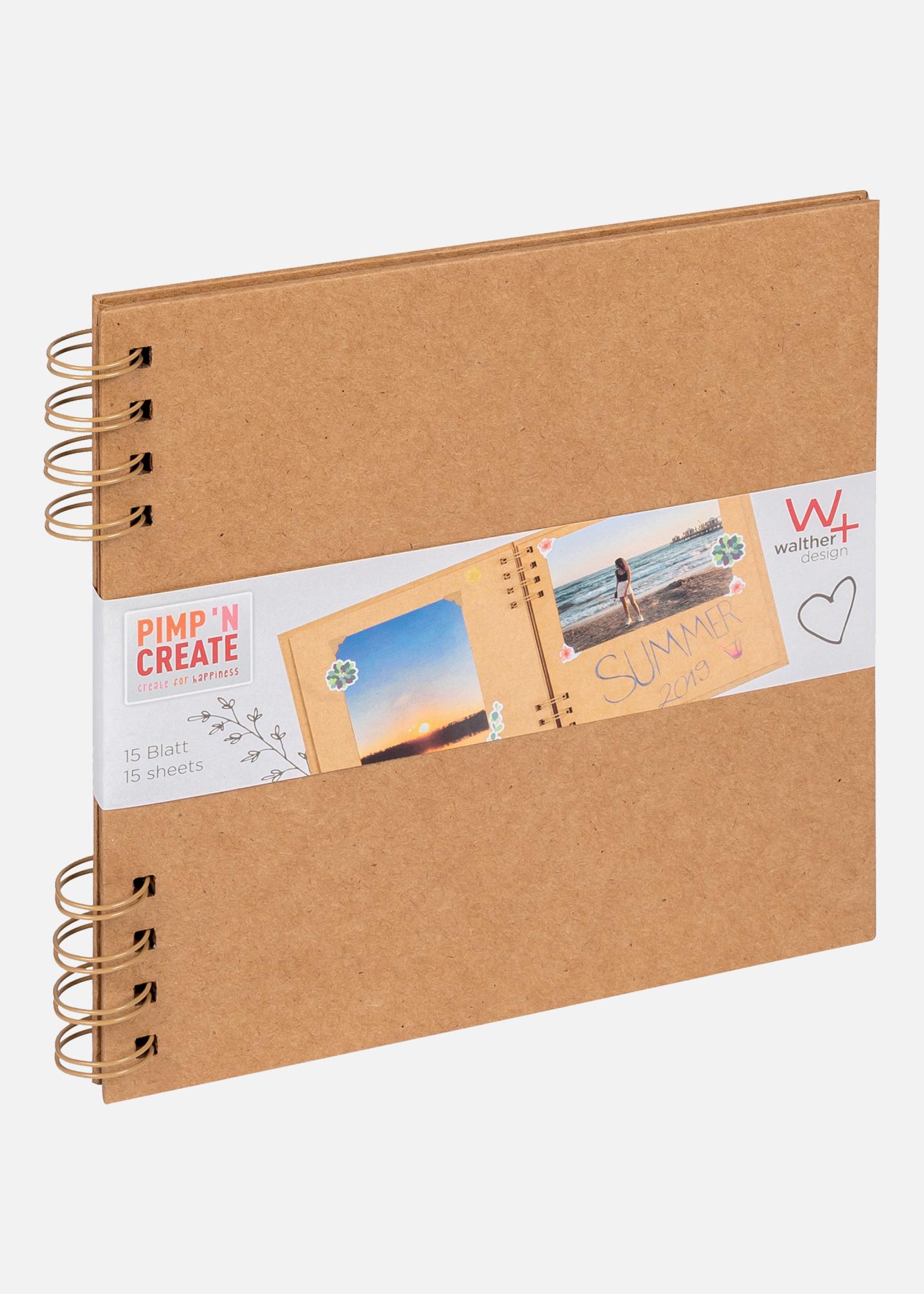 L'album a 30 pages, ce qui équivaut à 15 feuilles, et offre amplement d'espace pour coller vos photos favorites. Les pages brunes fournissent un arrière-plan chaud et accueillant qui met vos photos en valeur de la meilleure façon possible. Le design relié en spirale permet de feuilleter facilement l'album et offre une gestion flexible lorsque vous créez votre récit personnel.