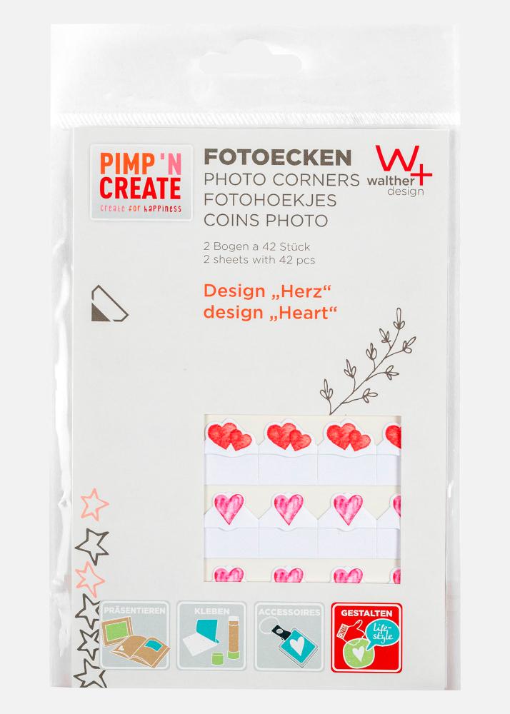 PAC Coins photo Heart est un ensemble de 84 coins photo adhésifs avec un joli motif cœur. Parfaits pour fixer des photos dans un album de manière douce sans utiliser de colle ou de ruban adhésif. Un détail décoratif et plein d'amour qui convient parfaitement aux albums de mariage et de souvenirs.