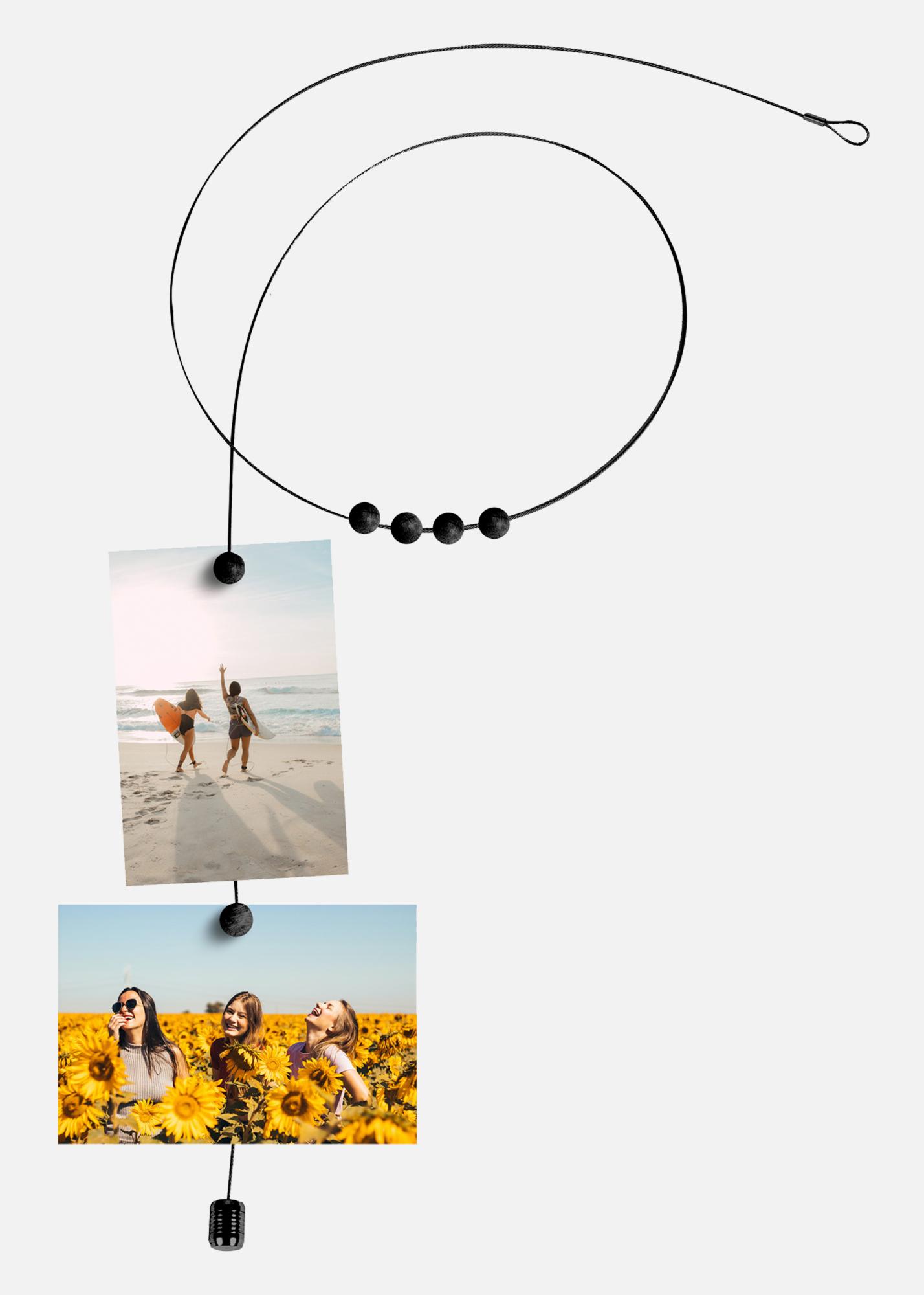 PAC Corde à photo Noire est une élégante corde à photo de 150 cm avec une teinte noire moderne. Un excellent choix pour ceux qui souhaitent un accrochage de photos, cartes ou petites décorations à la maison à la fois sobre et discret. La corde comprend des aimants puissants pour un accrochage facile.