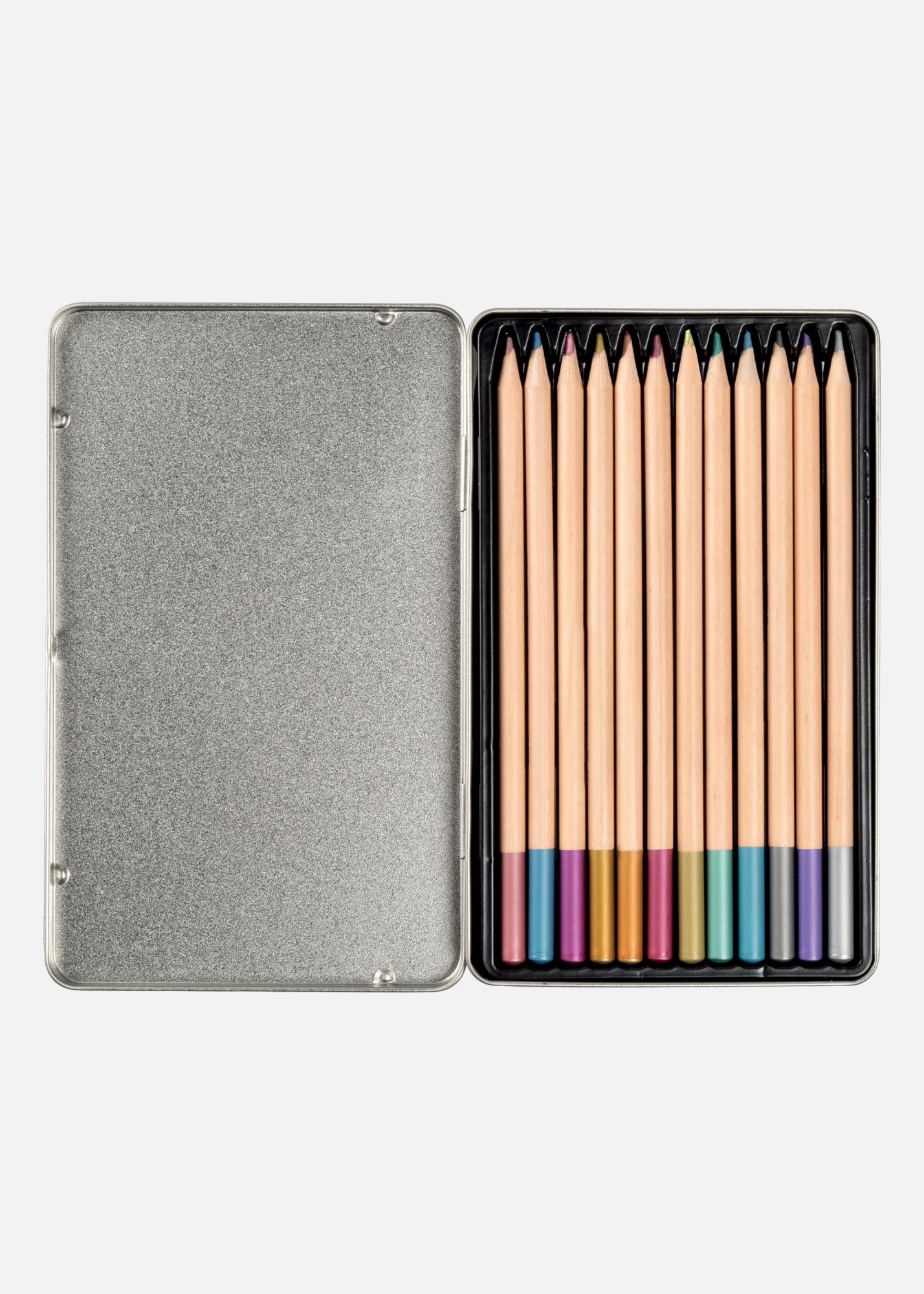 L'ensemble de stylos métalliques PAC contient 12 crayons de couleur métalliques qui offrent un effet élégant et scintillant sur les papiers clairs et sombres. Parfait pour le scrapbooking, les albums photos et les projets créatifs. L'ensemble inclut les couleurs or, argent, cuivre, rose, rouge, violet, bleu, bleu clair, vert, vert clair, brun et noir.