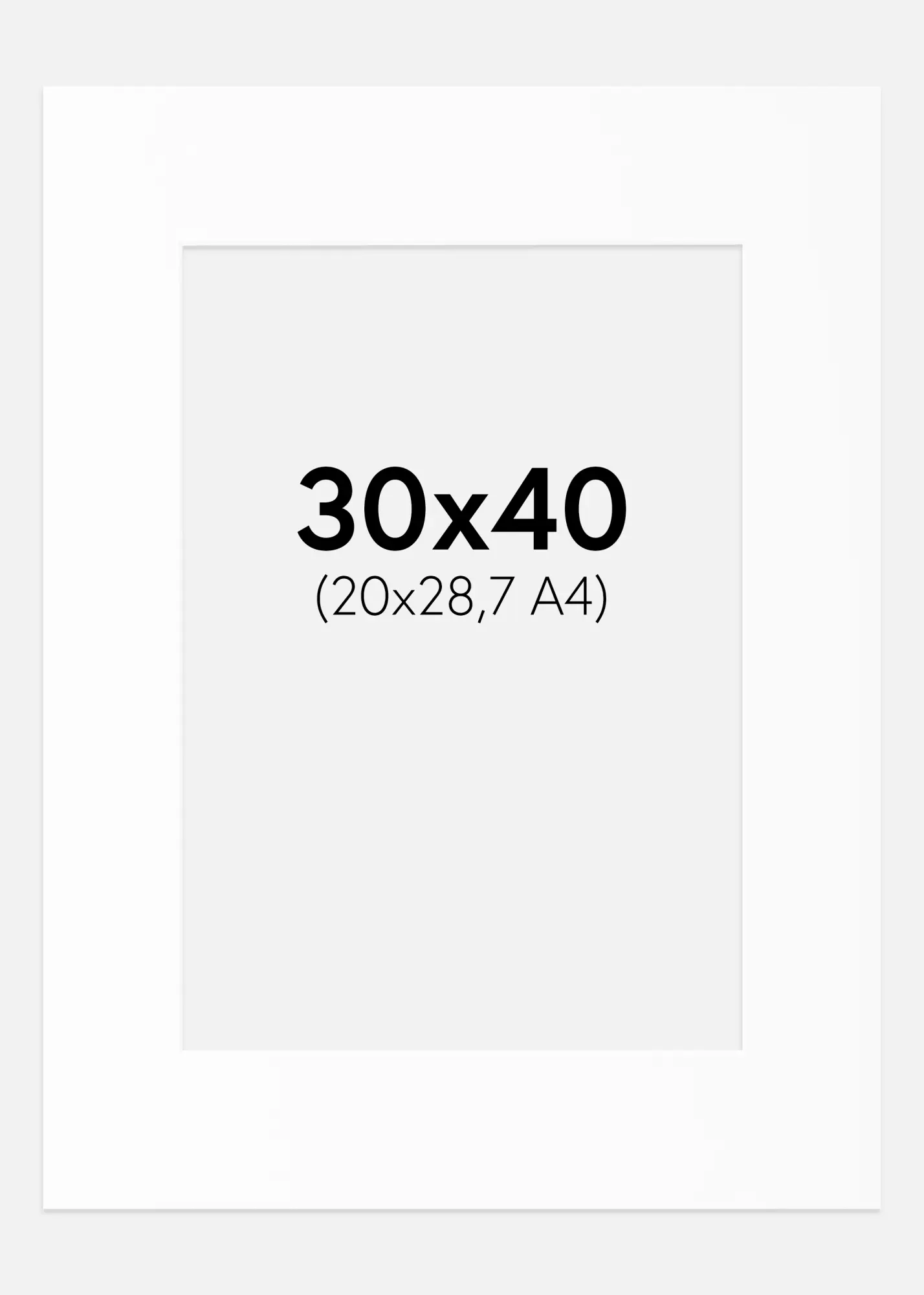 Passe-partout Blanc Standard (noyau blanc) 30x40 cm (20x28,7 - A4)