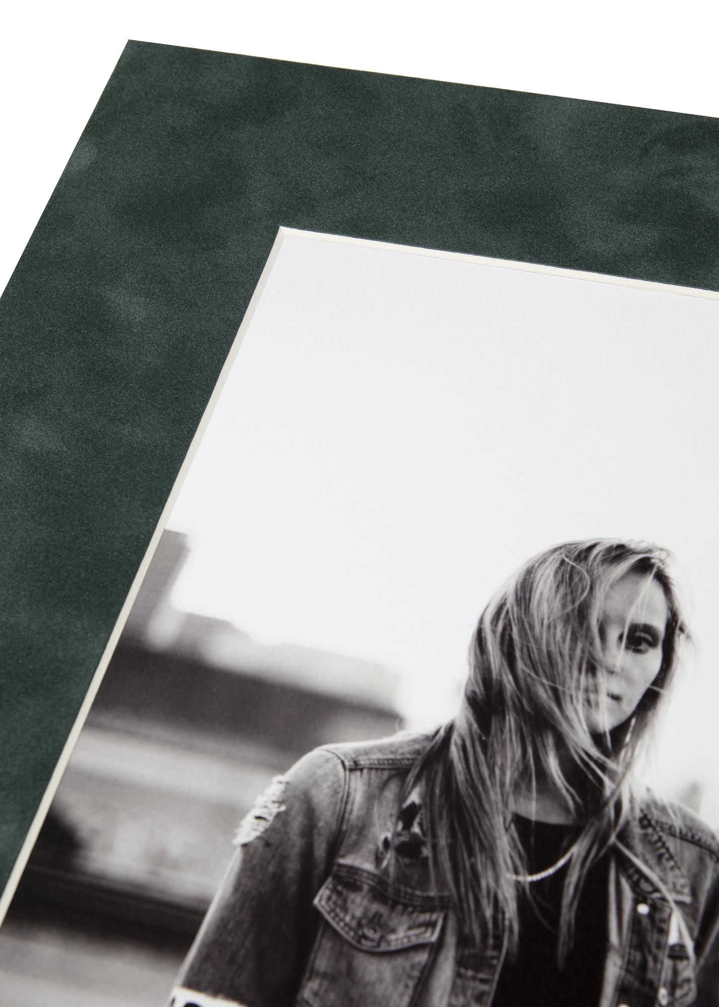 Le passe-partout Suede Pine a une élégante teinte verte et un agréable toucher daim qui créent un encadrement plein de goût et luxueux pour votre motif.