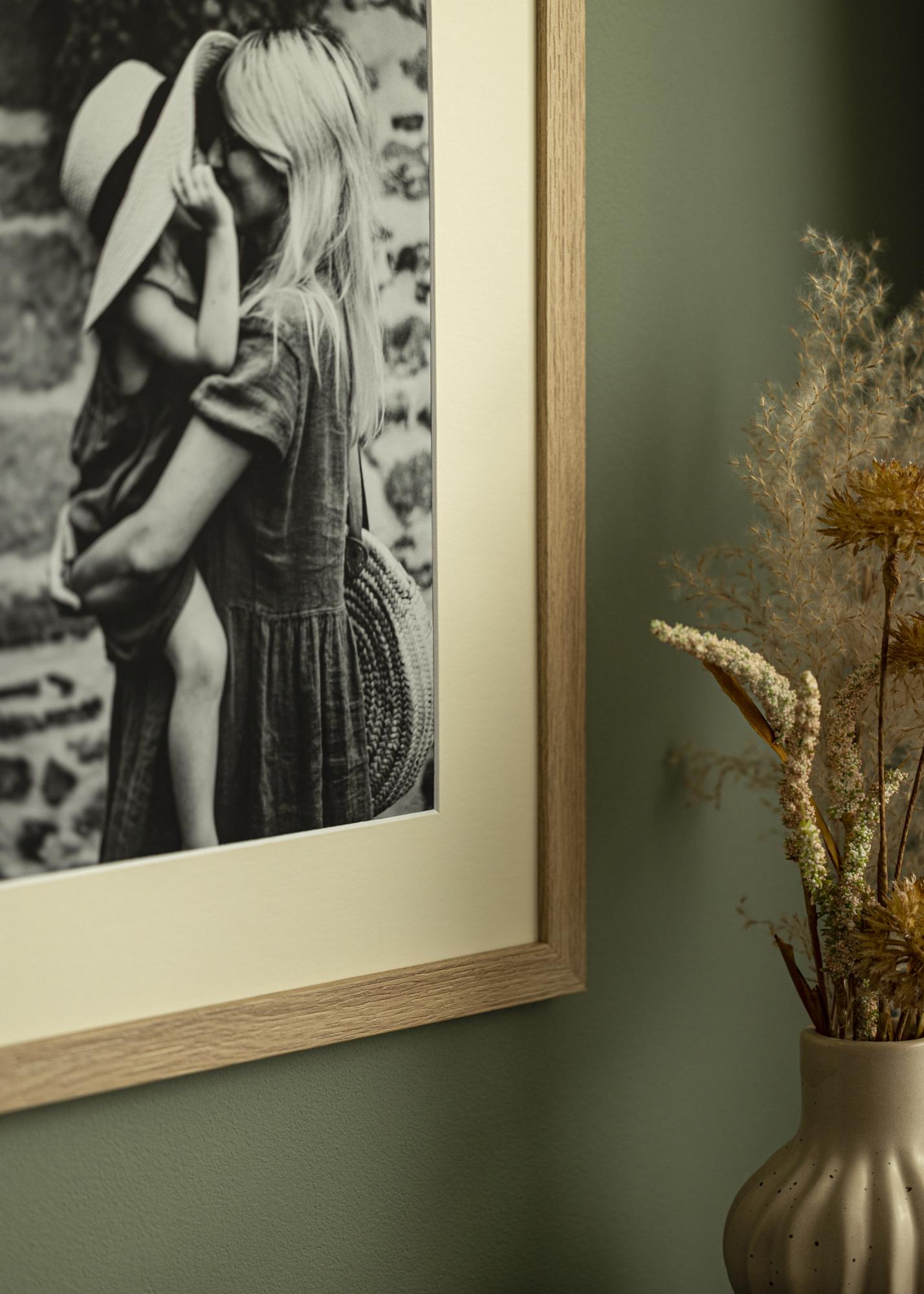 Ce passe-partout a une teinte antique élégante qui s'adapte à tout et donne une impression de fraîcheur au tableau. Le matériau provient d'une sylviculture durable et le passe-partout est à la fois sans acide et au PH neutre, ce qui préserve la belle qualité du sujet.