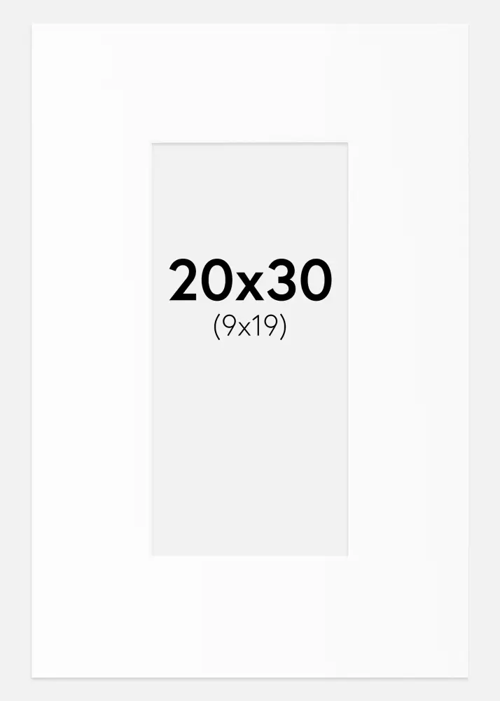 Passe-partout Blanc Standard (noyau blanc) 20x30 cm (9x19)