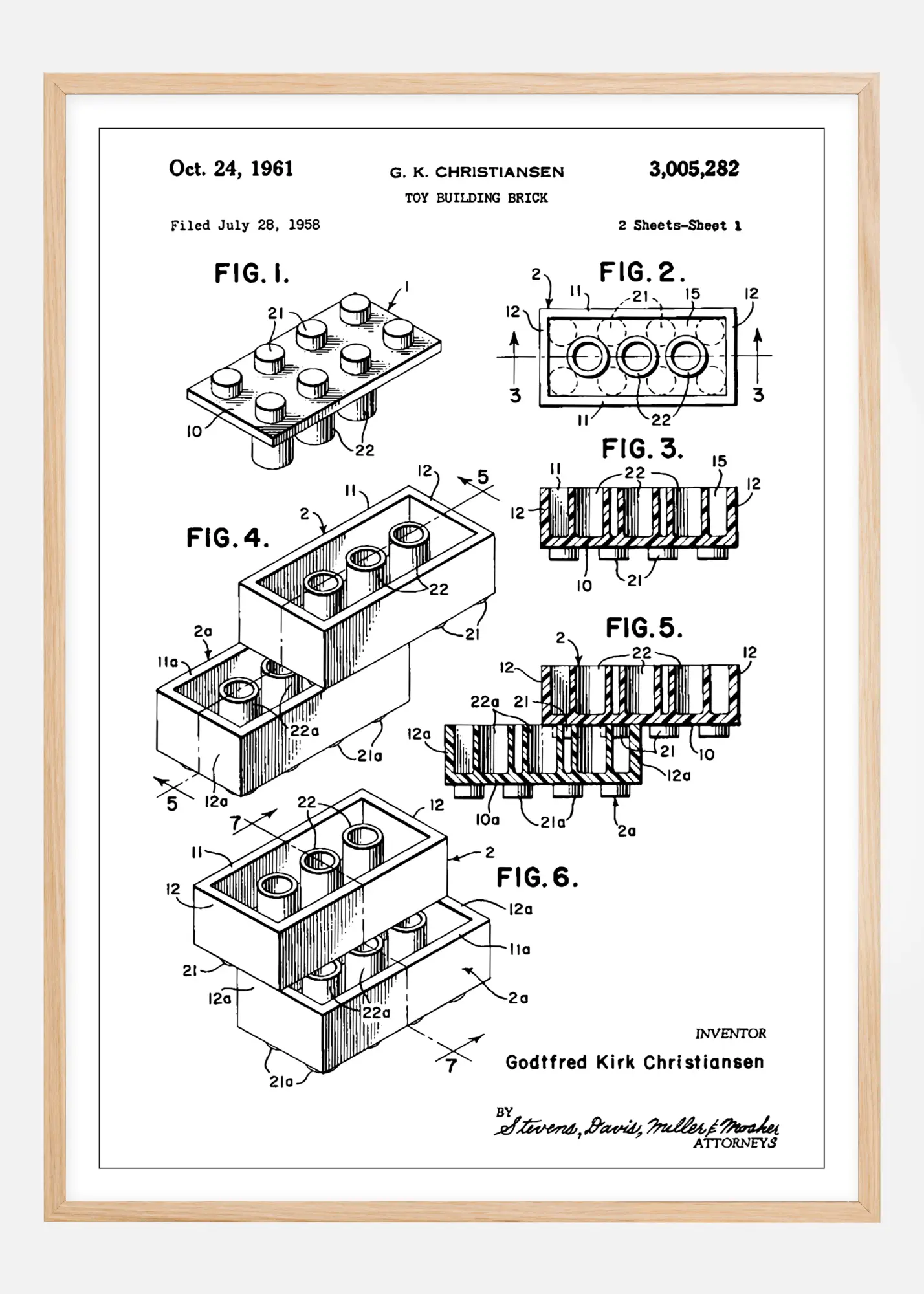 Patent Print - Lego Block I - White Poster (40x50 cm)