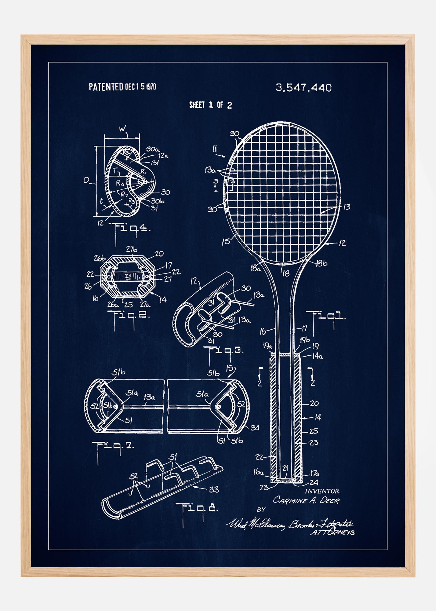 Patent Print - Tennis Racket - Blue Poster (21x29,7 cm (A4))