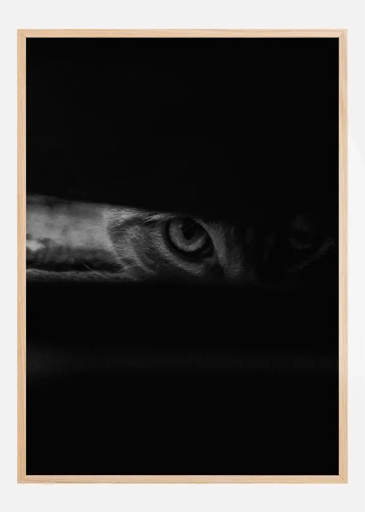 Cette affiche unique évoque une sensation de mystère et de beauté dans l'inconnu. La seule couleur provient de l'œil vigilant du chat, qui semble briller en contraste avec l'ombre environnante. C'est une image qui suscite la curiosité et l'imagination du spectateur, et qui créera à coup sûr des conversations quel que soit l'endroit où elle sera placée. Cette impression conviendrait parfaitement à un intérieur moderne ou industriel, où sa pureté et ses forts contrastes peuvent être pleinement appréciés.