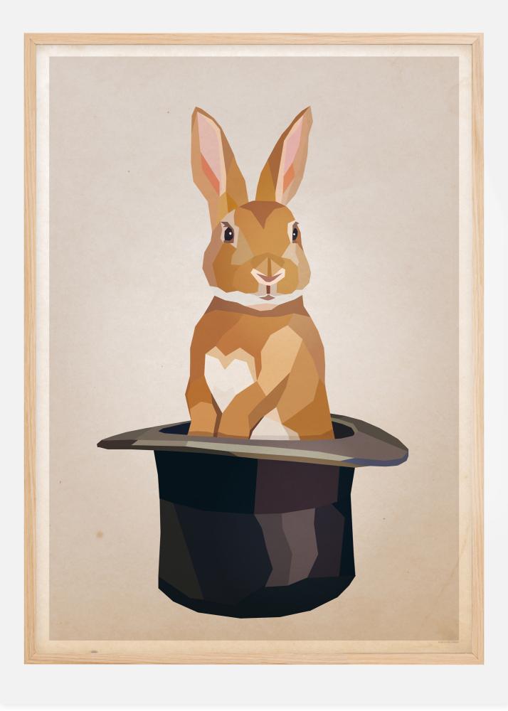 Un poster simple mais amusant d'un lapin assis dans un chapeau de magicien. Calme, le lapin de couleur dorée regarde joyeusement le spectateur. Sur un fond beige, les couleurs du lapin s'harmonisent parfaitement. Cette magnifique affiche transformera la chambre de votre enfant en un environnement chaleureux et convivial.