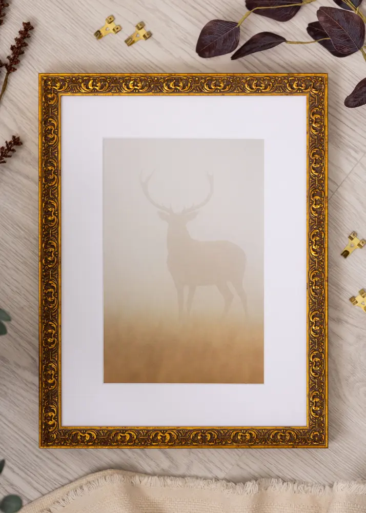 Ce cadre photo élégant en or est une parfaite combinaison de tradition et de luxe. Avec ses détails décoratifs ornementés et sa finition en or antique, il offre une sensation de beauté intemporelle. Le cadre est idéal pour mettre en valeur des portraits, des œuvres d'art ou des motifs historiques, et son design classique en fait un choix excellent pour tous les foyers.