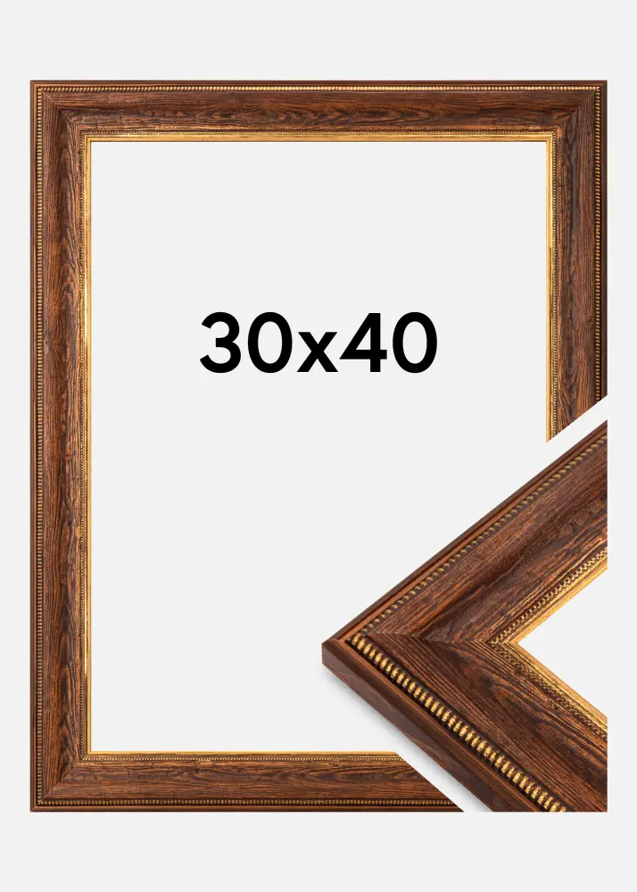 Ce cadre photo élégant de taille 30x40 cm est une parfaite combinaison de charme rustique et d'élégance classique. Fabriqué en bois de haute qualité, le cadre présente une couleur brun profond et chaud qui met en valeur la structure naturelle du bois. Les détails décoratifs dorés le long du bord intérieur ajoutent une touche sophistiquée, ce qui rend ce cadre idéal pour les intérieurs traditionnels et d'inspiration vintage.