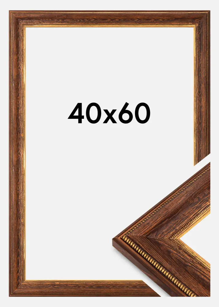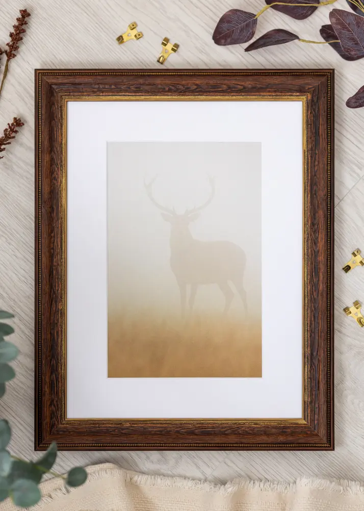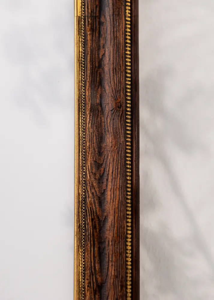 Cet élégant cadre photo de dimension 40x60 cm est une parfaite combinaison de charme rustique et d'élégance classique. Fabriqué en bois de haute qualité, le cadre a une couleur brun profond et chaud qui met en valeur la structure naturelle du bois. Les détails décoratifs dorés le long du bord intérieur ajoutent une touche sophistiquée qui complète à la fois les intérieurs traditionnels et inspirés du vintage.