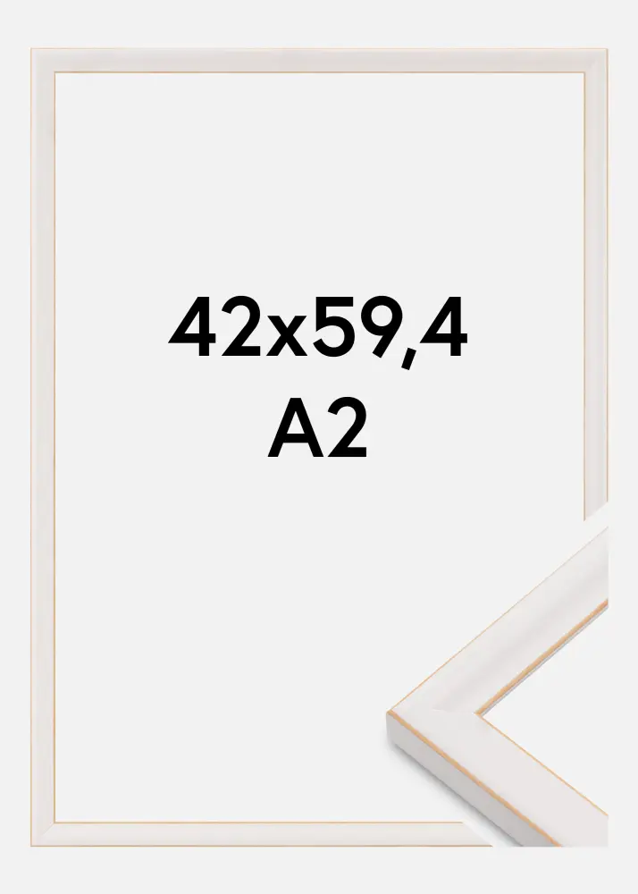 Ce cadre photo élégant dans une teinte douce de blanc crème avec un fin bord doré est une parfaite combinaison de design classique et moderne. Avec une taille de cadre de 42x59,4 cm (A2), il est idéal pour mettre en valeur des œuvres d'art, des photographies ou des souvenirs de manière intemporelle. Le détail doré subtil le long du bord intérieur offre une sensation exclusive qui encadre vos images de manière sophistiquée.