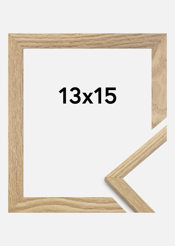 Le cadre, fabriqué en MDF avec placage en aluminium et une surface de couleur chêne est doté d'un mince profil de 14 mm. Il y a suffisamment d'espace pour combiner vos images avec un passe-partout luxueux, grâce à la profondeur intérieure du cadre (profondeur de baguette) de 12 mm.