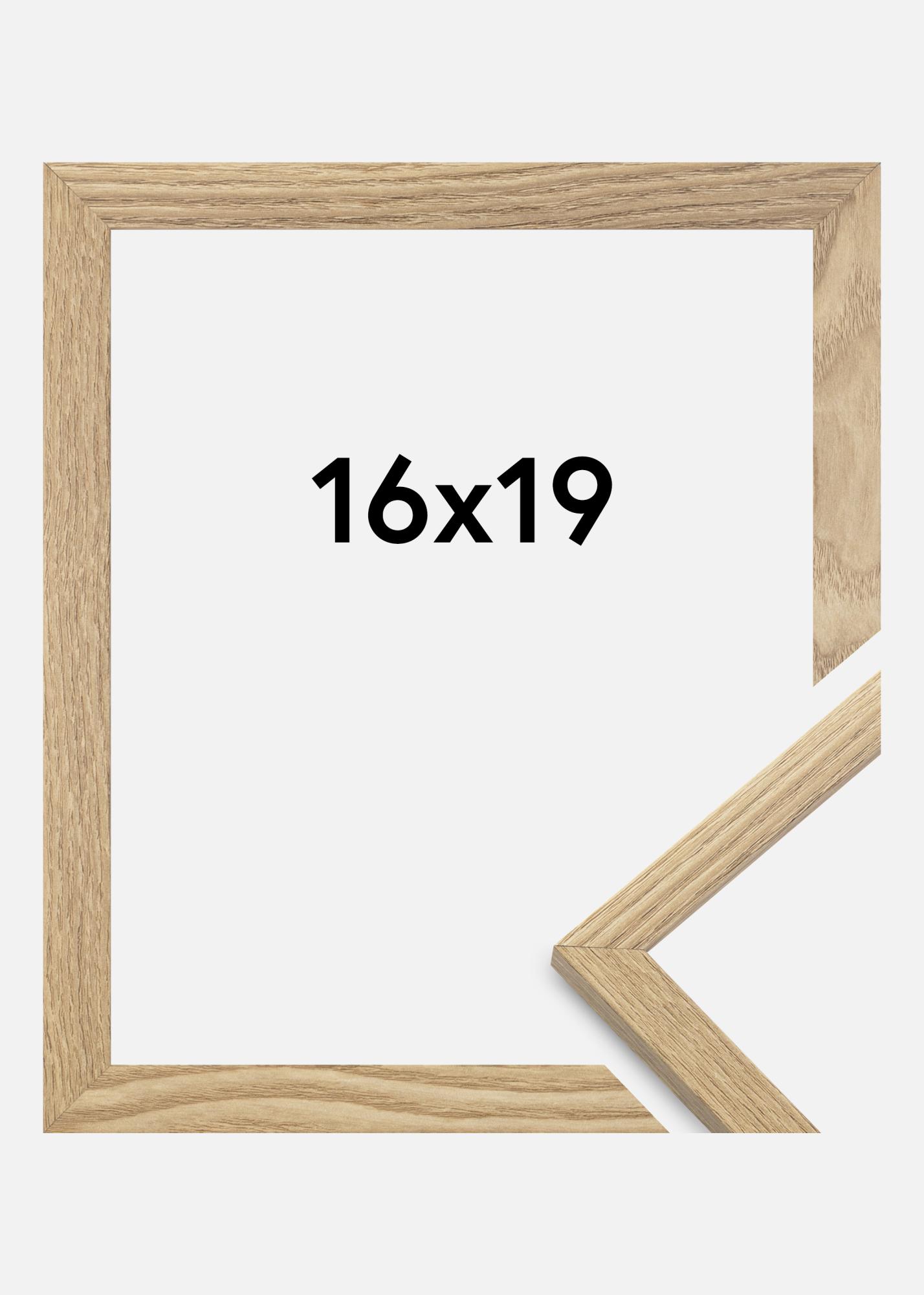 Le cadre, fabriqué en MDF avec placage en aluminium et une surface de couleur chêne est doté d'un mince profil de 14 mm. Il y a suffisamment d'espace pour combiner vos images avec un passe-partout luxueux, grâce à la profondeur intérieure du cadre (profondeur de baguette) de 12 mm.