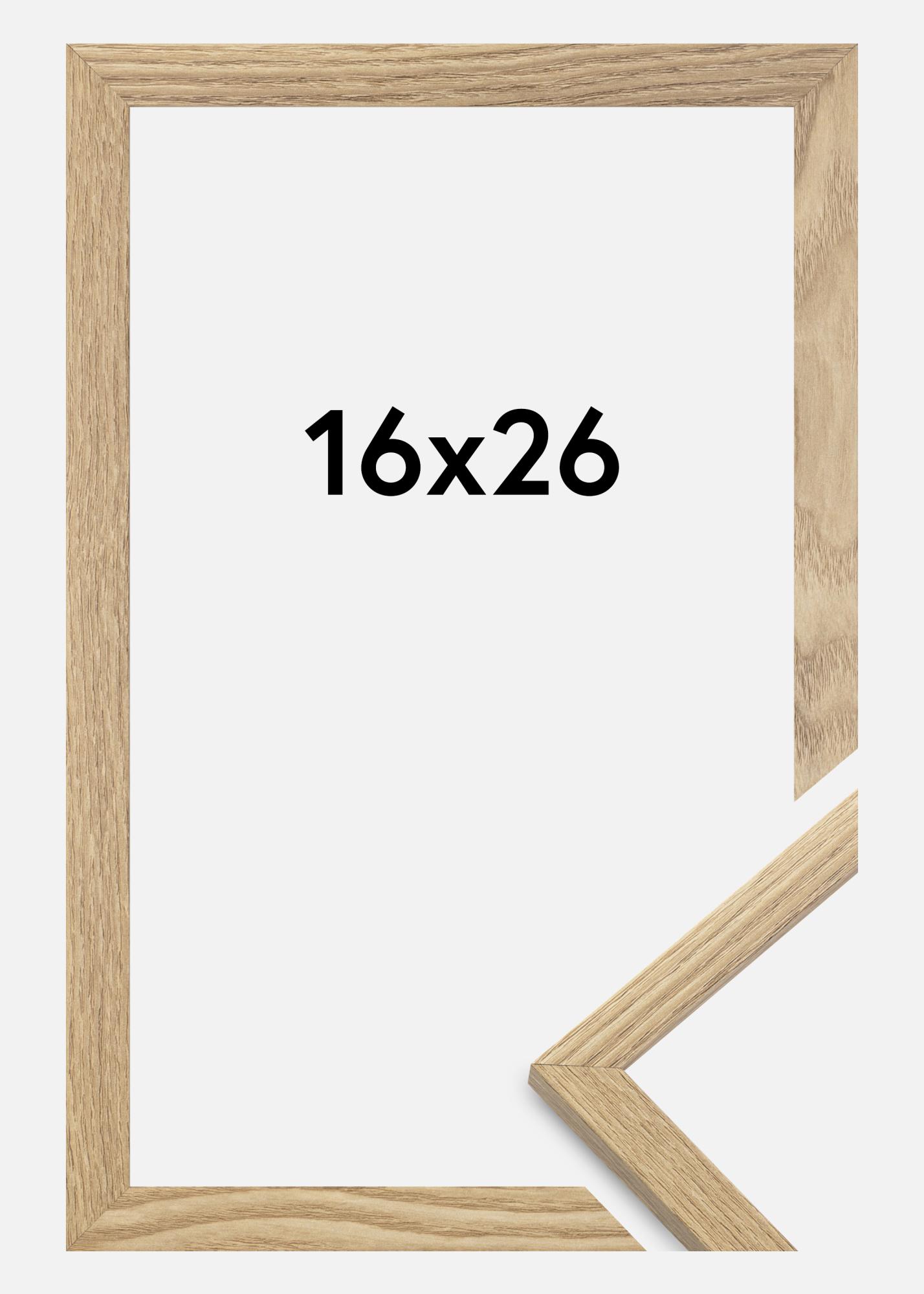 Le cadre, fabriqué en MDF avec placage en aluminium et une surface de couleur chêne est doté d'un mince profil de 14 mm. Il y a suffisamment d'espace pour combiner vos images avec un passe-partout luxueux, grâce à la profondeur intérieure du cadre (profondeur de baguette) de 12 mm.