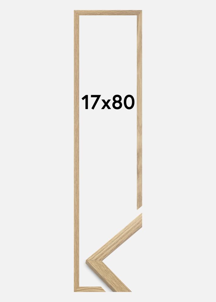 Le cadre, fabriqué en MDF avec placage en aluminium et une surface de couleur chêne est doté d'un mince profil de 14 mm. Il y a suffisamment d'espace pour combiner vos images avec un passe-partout luxueux, grâce à la profondeur intérieure du cadre (profondeur de baguette) de 12 mm.
