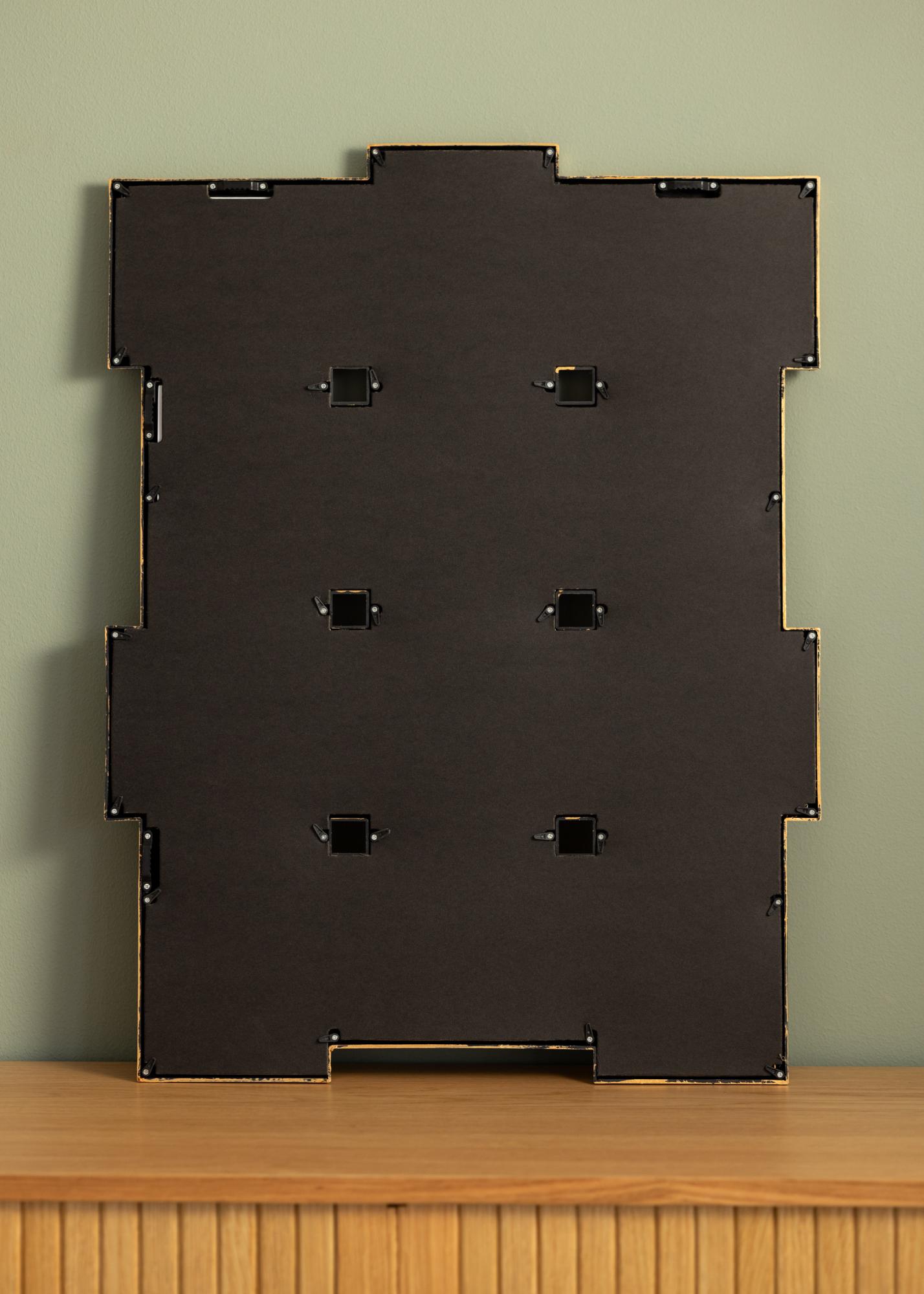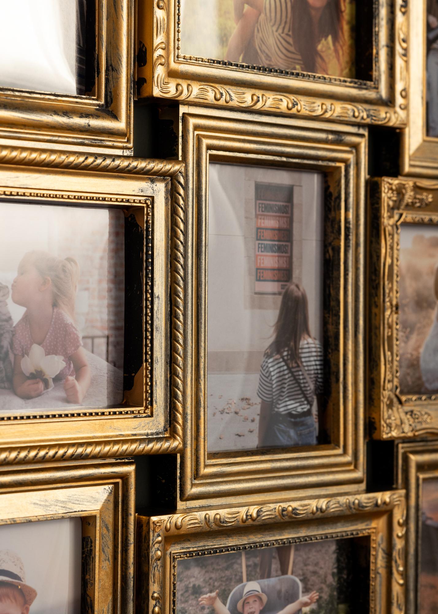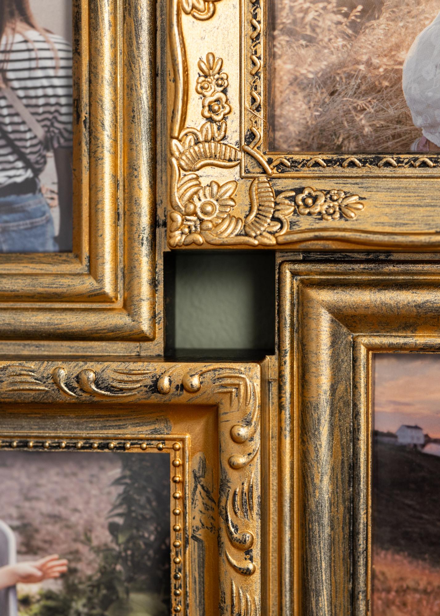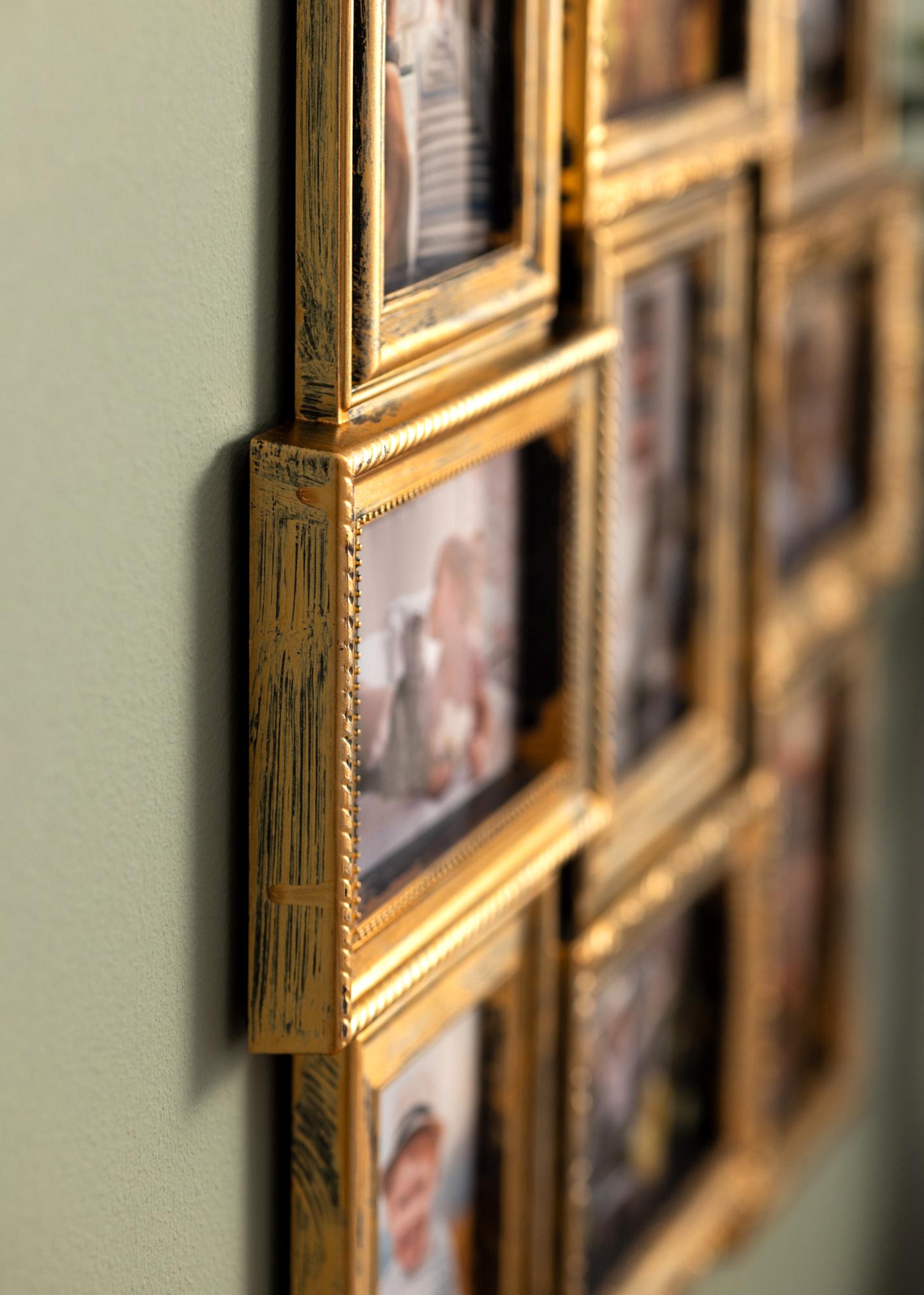 Suchen Sie nach einem Gold-bilderrahmen im schönen Retrostil mit Platz für all Ihre Lieblingsbilder? Dieser Collage-bilderrahmen bietet Platz für 12 Bilder in sowohl Hoch- als auch Querformat, symmetrisch in bilderrahmen nebeneinander angeordnet.
