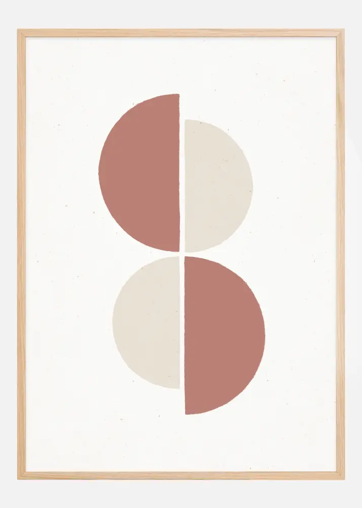 Ce poster élégant et contemporain se distingue par sa simplicité et son élégance. 'Rouille et Sable - Duo' est un jeu de géométrie et de couleur, où deux demi-cercles dans une couleur rouille rustique et un ton sable doux créent un contraste visuel intéressant. Le motif peut inspirer à la réflexion et s'intègre parfaitement dans des styles d'intérieur minimalistes ou modernes qui se concentrent sur des lignes épurées et des couleurs subtiles.