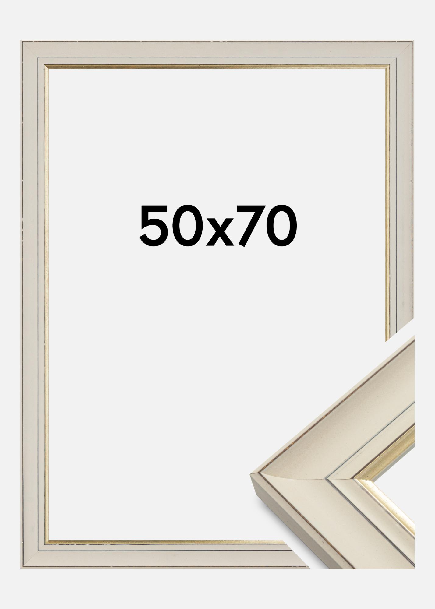Cadre de style classique à la captivante touche rétro. Ce cadre est doté d'un profil patiné de couleur blanche et d'une belle bordure dorée le long du motif. Avec son design neutre et son choix de couleur, c'est un cadrequi s'adapte à presque tous les intérieurs et à tous les types de motifs.