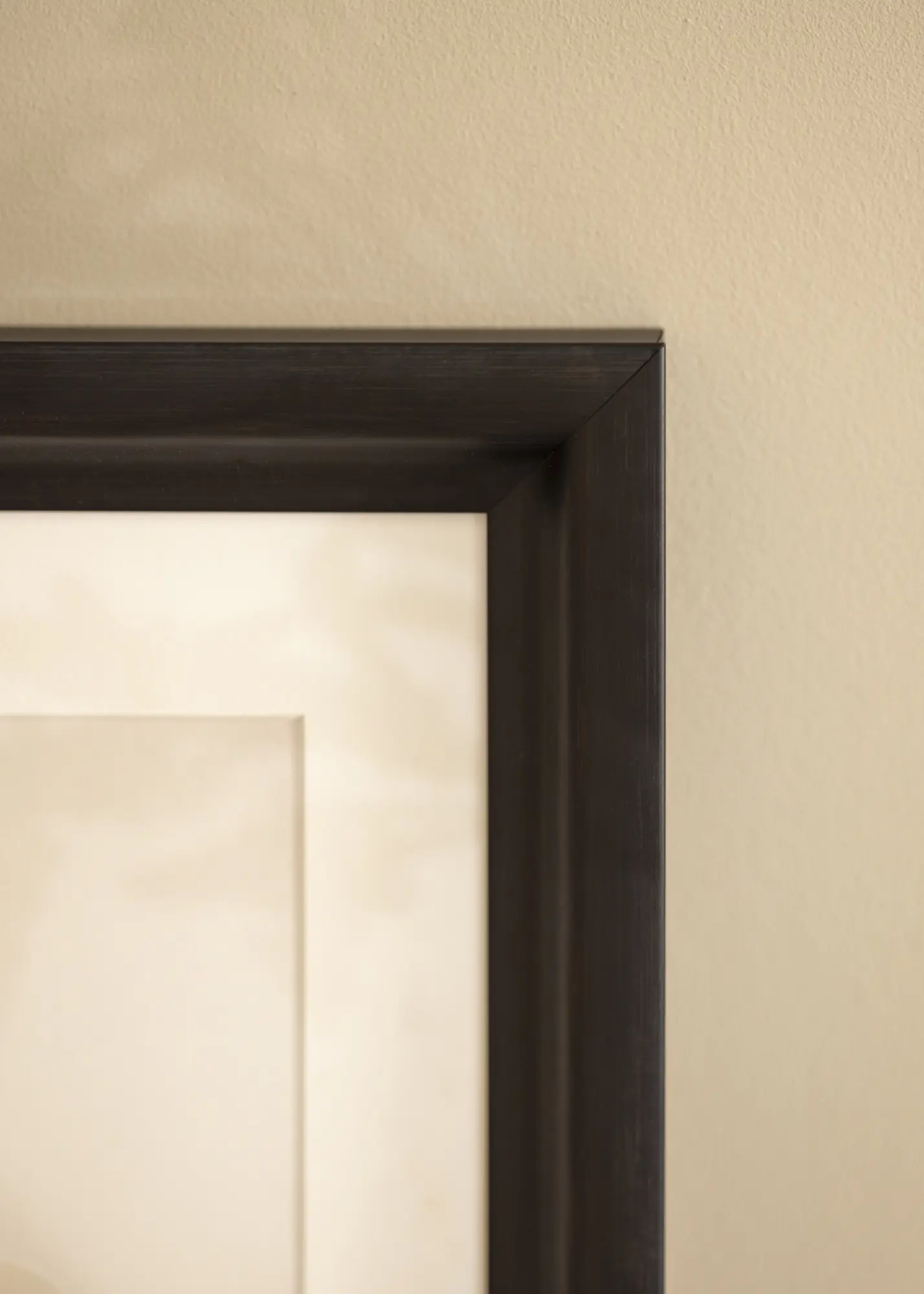 Cadre photo traditionnel de couleur marron noir plus proche du noir que du marron. Un excellent choix lorsque vous recherchez un cadre sur mesure dans une teinte sombre sur lequel ressort la structure du bois.