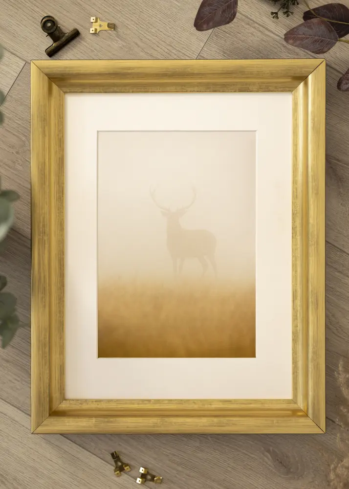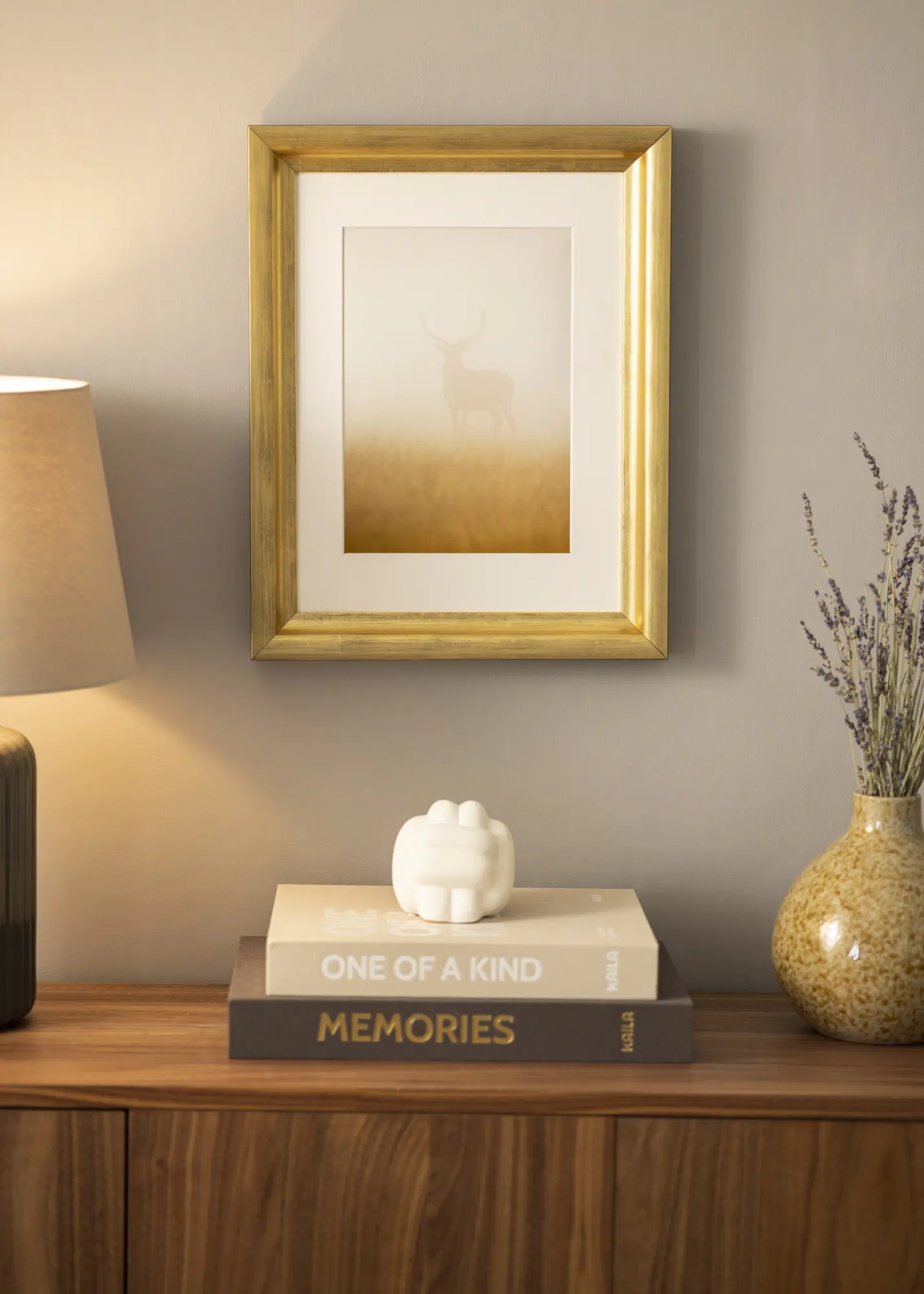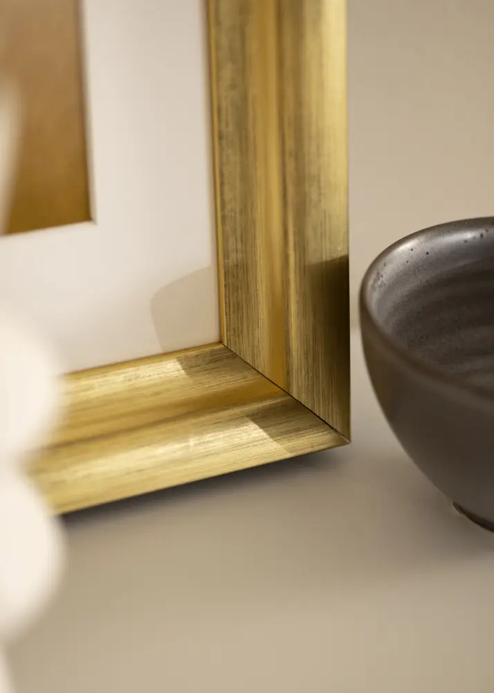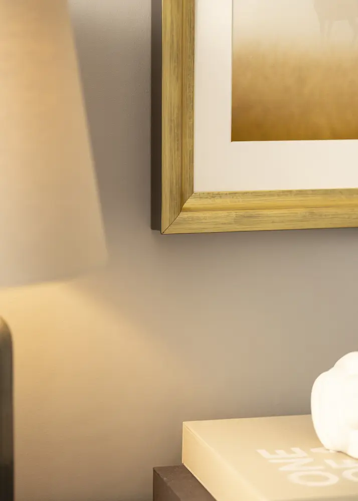 Cadre photo classique dont vous décidez vous-même de la taille. Avec son profil large et profond, ce cadre ne manquera pas de se faire remarquer. Son ton doré agréable et doux apporte au motif une belle touche cosy.