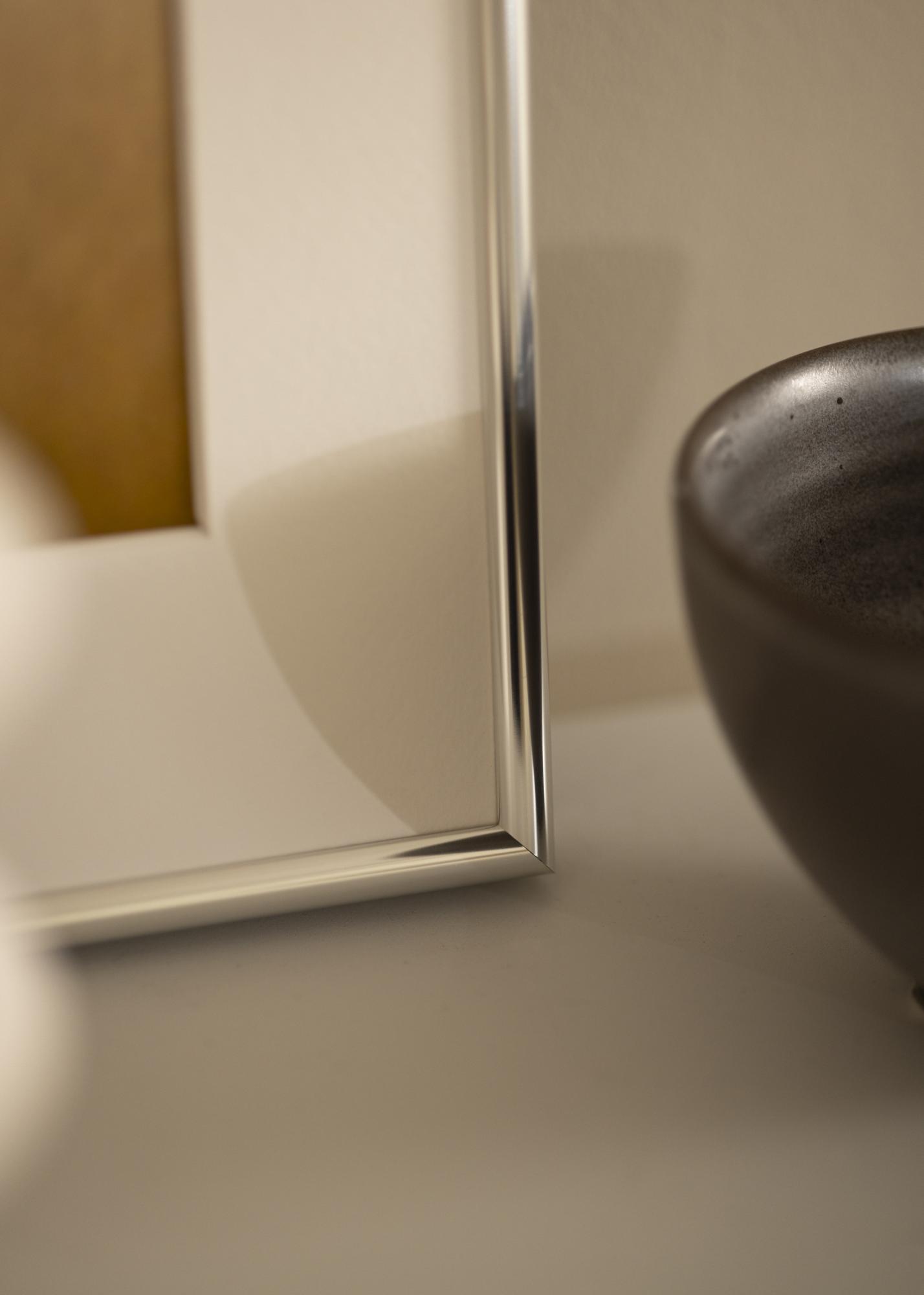 Cadre argenté brillant moderne aux côtés brossés et au profil profond de 26 mm qui fait sortir le motif du mur et crée un bel effet 3D. Parfait lorsque vous recherchez un cadre argenté simple qui confère à vos photos un encadrement élégant.