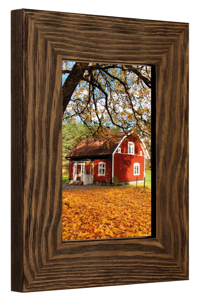 Solide cadre en bois marron au grain de bois apparent et au profil large. Convient bien lorsque vous recherchez un cadre en bois foncé au style naturel. Parfait pour les photos de nature et de paysage.