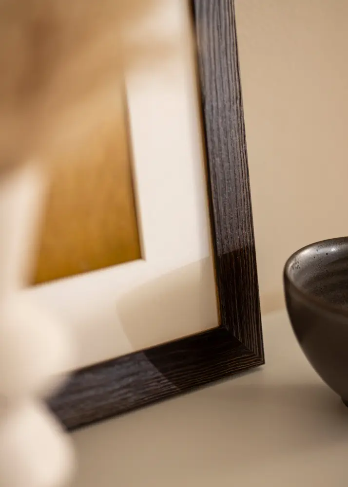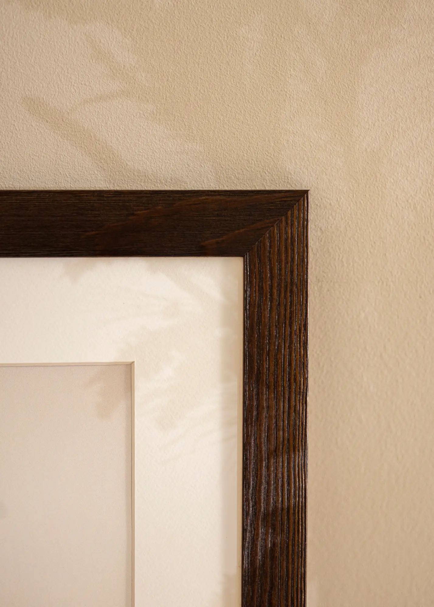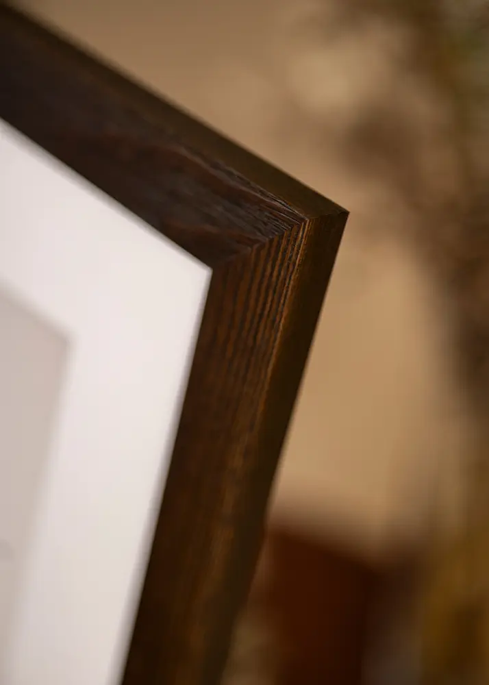 Solide cadre en bois marron au grain de bois apparent et au profil large. Convient bien lorsque vous recherchez un cadre en bois foncé au style naturel. Parfait pour les photos de nature et de paysage.