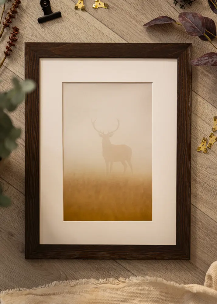 Solide cadre en bois marron au grain de bois apparent et au profil large. Convient bien lorsque vous recherchez un cadre en bois foncé au style naturel. Parfait pour les photos de nature et de paysage.