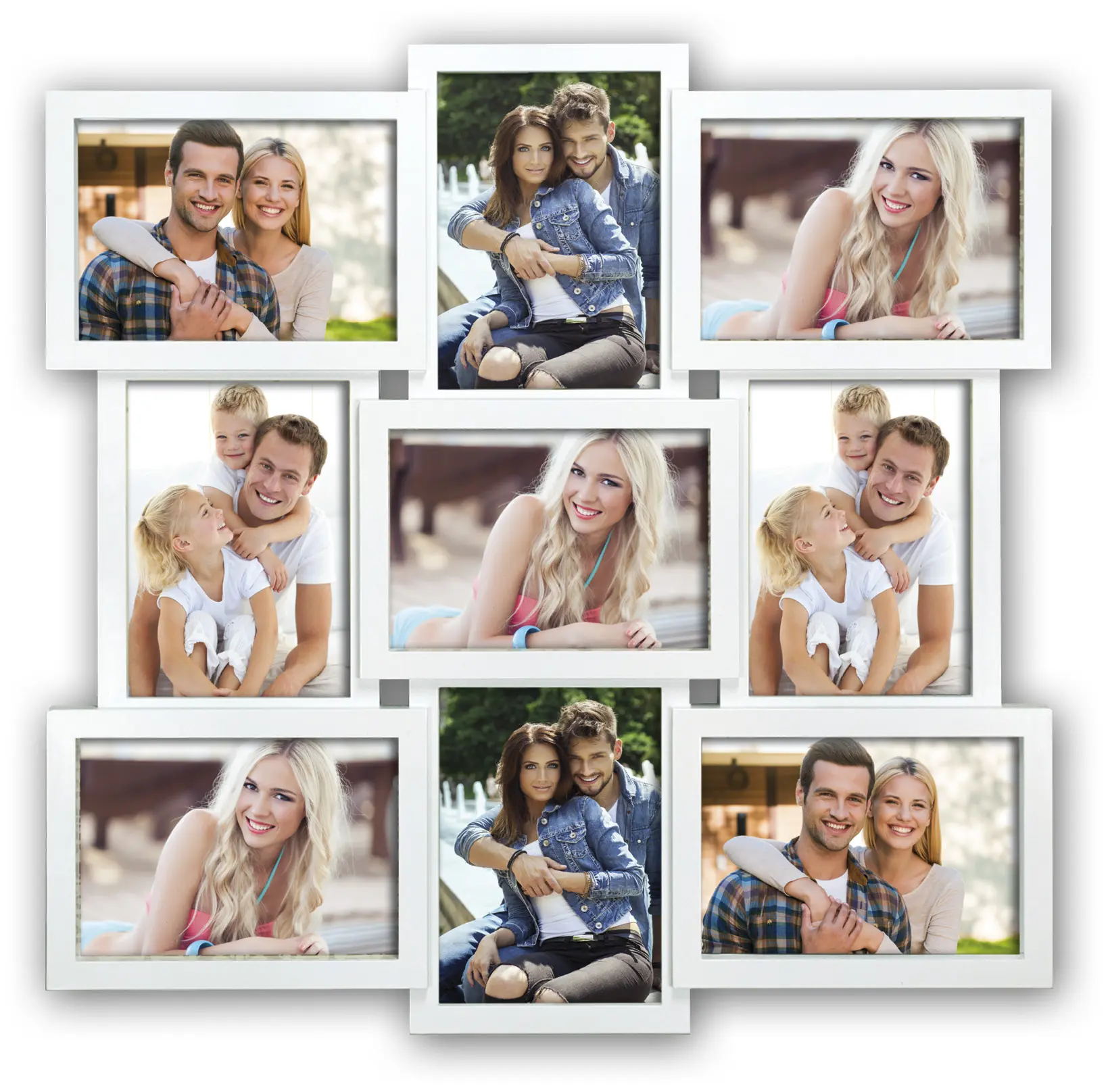 Vous avez un mur chez vous qui semble un peu vide et triste ? Égayez-le avec un beau cadre pour collage rempli de photos personnelles ! Cette élégante variante a de la place pour 4 photos de format portrait et 5 de format paysage mesurant 13x18 cm.