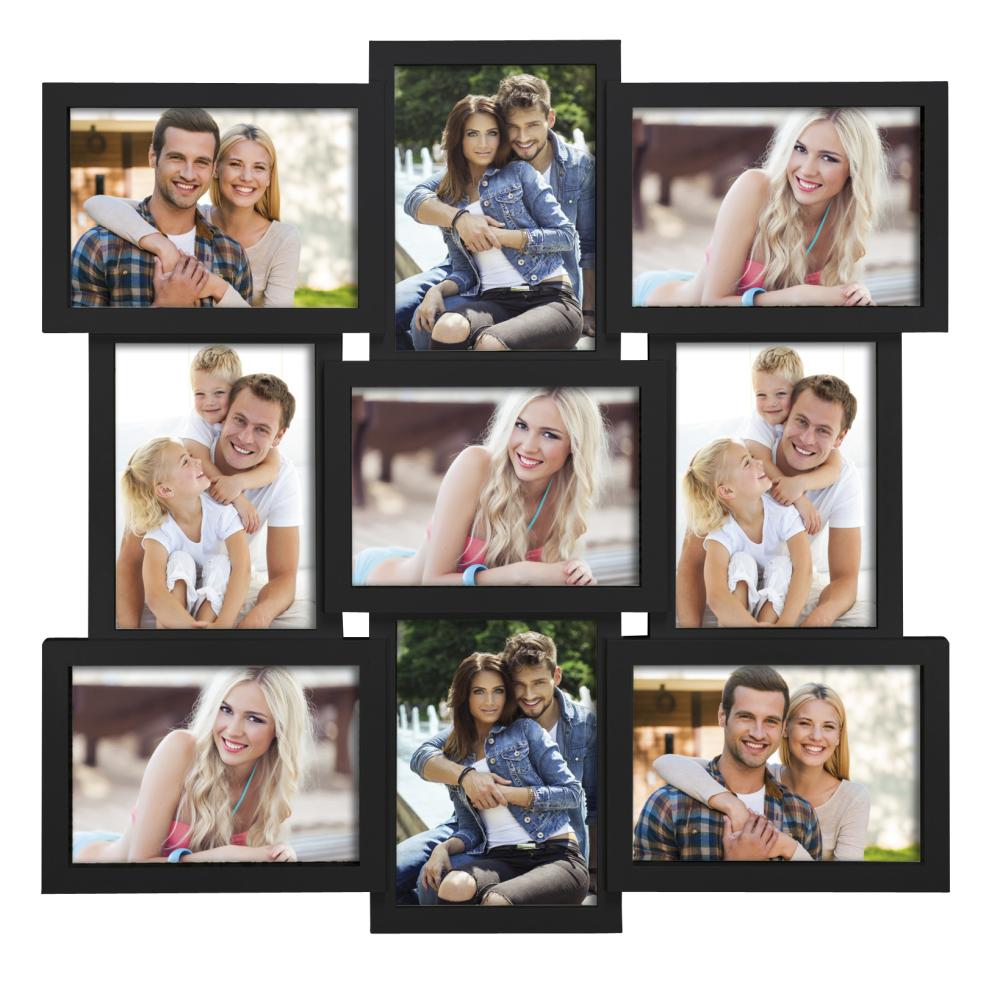 Vous avez un mur chez vous qui semble un peu vide et triste ? Égayez-le avec un beau cadre pour collage rempli de photos personnelles ! Cette élégante variante a de la place pour 4 photos de format portrait et 5 de format paysage mesurant 13x18 cm.