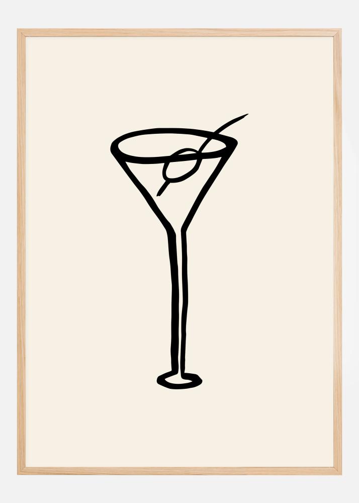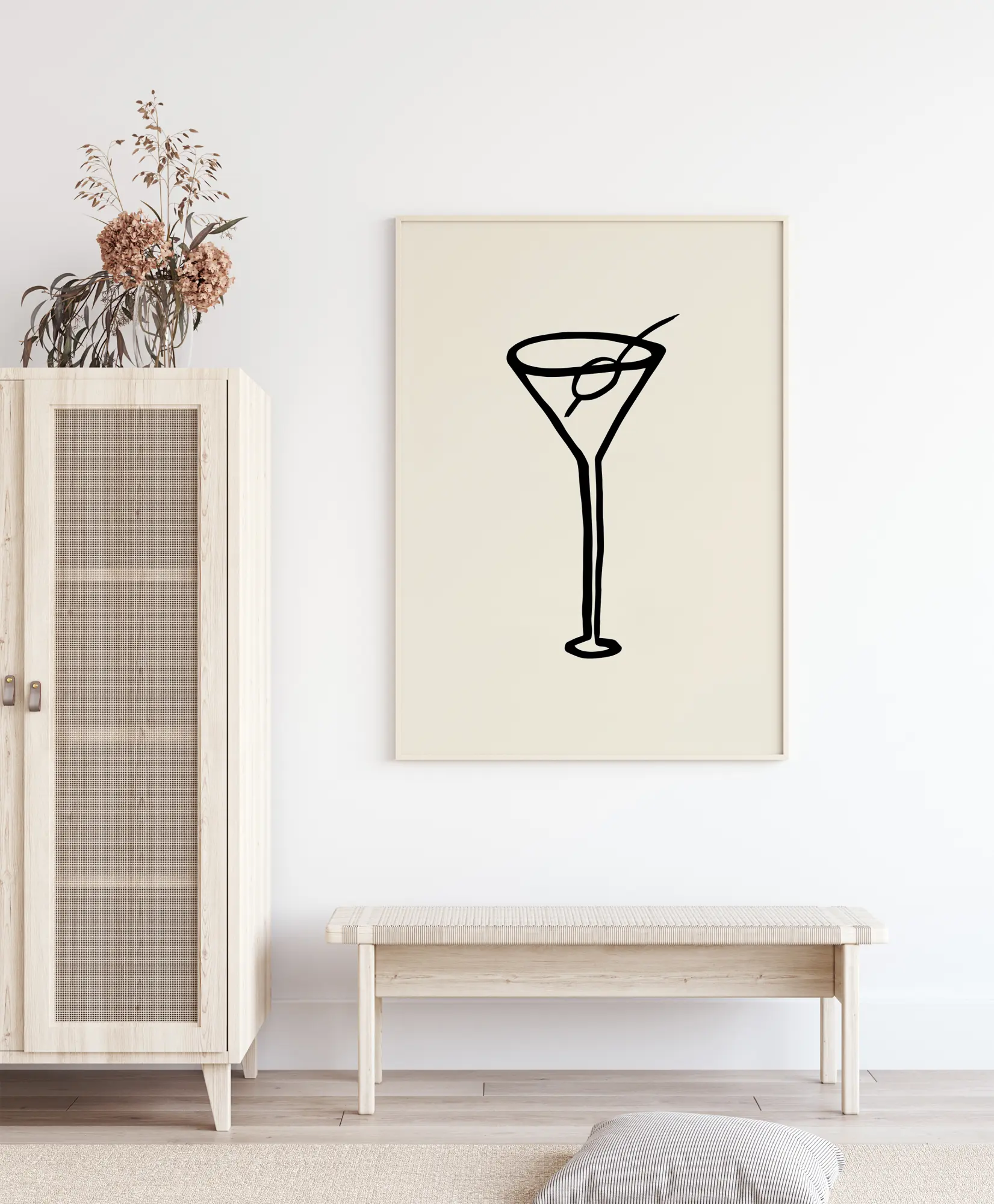 Un simple poster d'un verre à cocktail avec une olive dedans. Retrouvez l'ambiance de James Bond en accrochant cette affiche sur votre mur. Associez ce verre à un mur de couleur vive pour que ce dessin puissant soit mis en valeur. Mélangez, sans secouez !