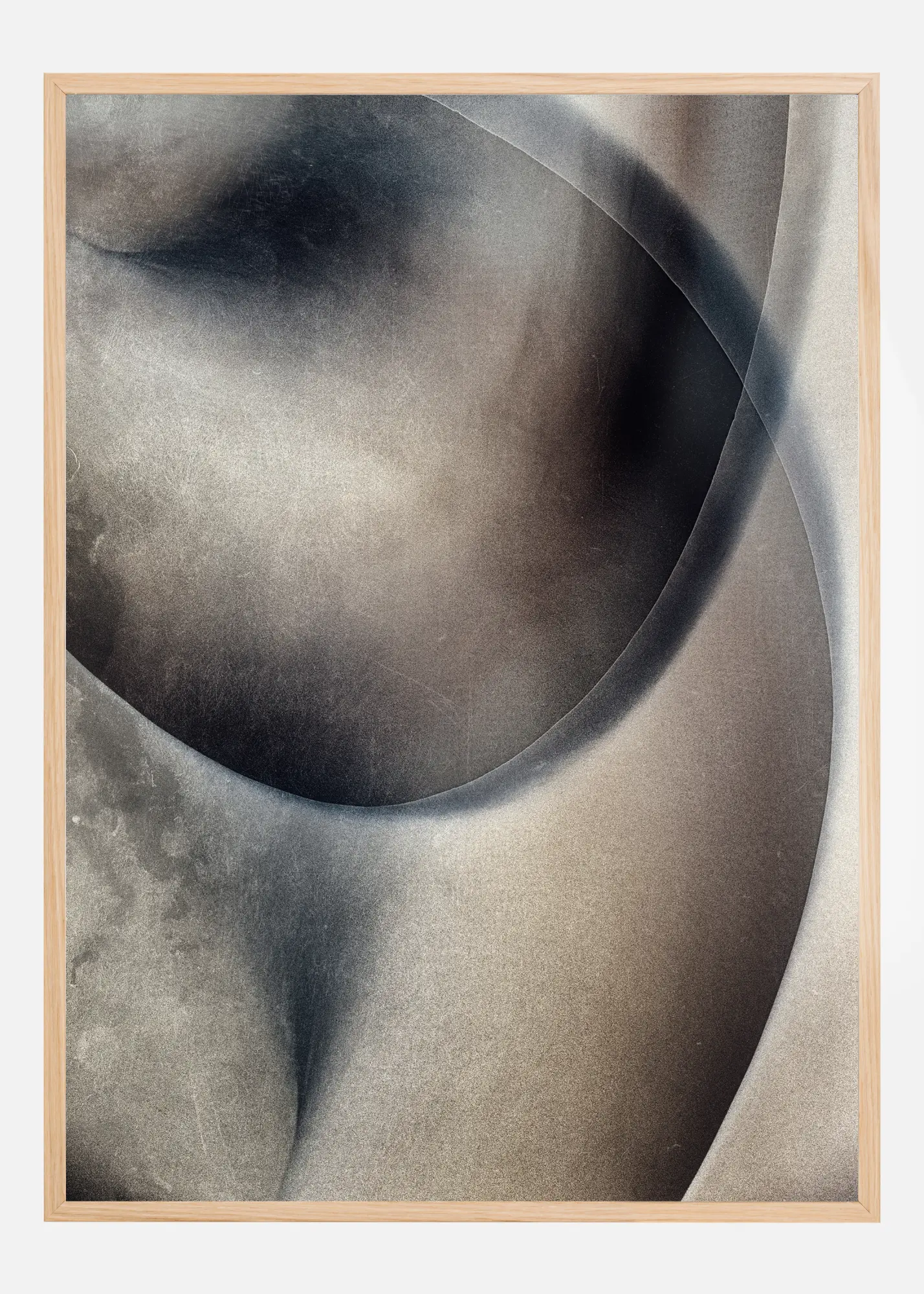 Uun dessin représentant un gros plan des hanches et du torse d'une femme. Cette affiche abstraite étonnante présente de doux lavis de bleus et de violets pour créer les lignes du corps. Des formes supplémentaires plus fortes se chevauchent et font ressortir certaines zones. Appréciez cette image abstraite de corps dans votre maison.