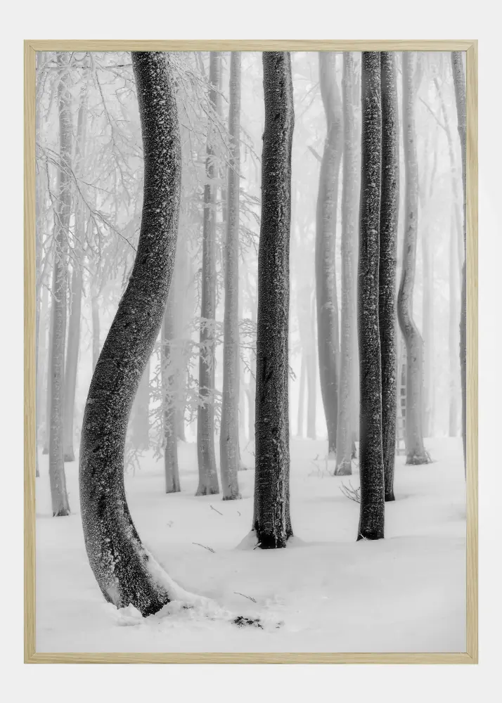 Un étonnant poster sur la nature mettant en scène des arbres à la croissance géométrique. Cette affiche magique met en scène des arbres sombres dans un bois recouvert de neige. Accrocher cette affiche au mur, c’est faire rentrer l'hiver dans votre maison de manière originale..