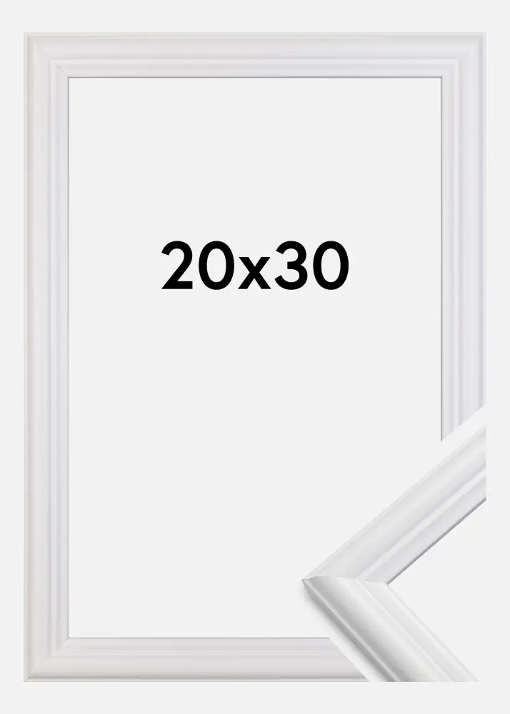 Le cadre Siljan blanc 8B est doté d'une bordure en bois profilée classique peinte en blanc.