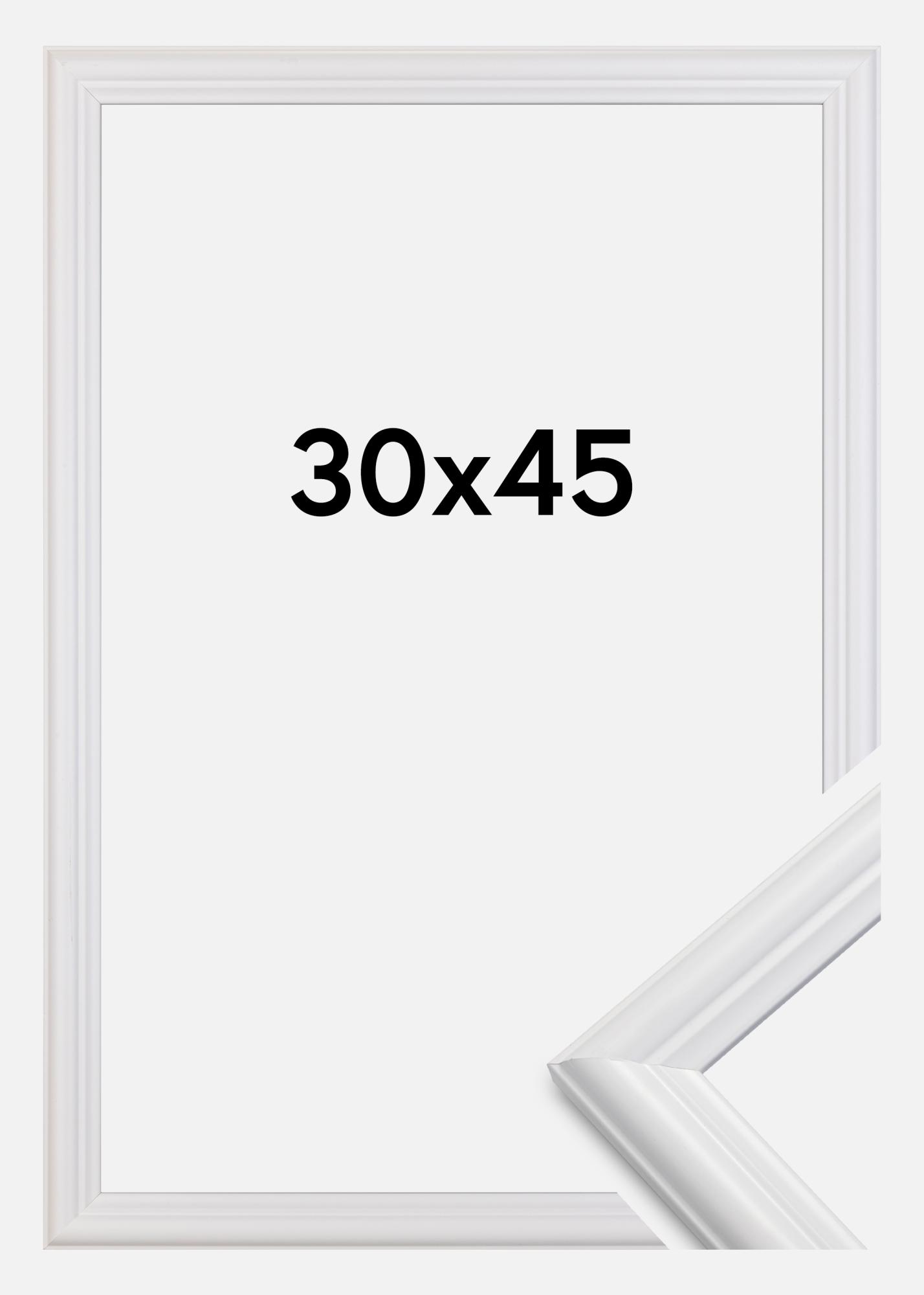 Le cadre Siljan blanc 8B est doté d'une bordure en bois profilée classique peinte en blanc.