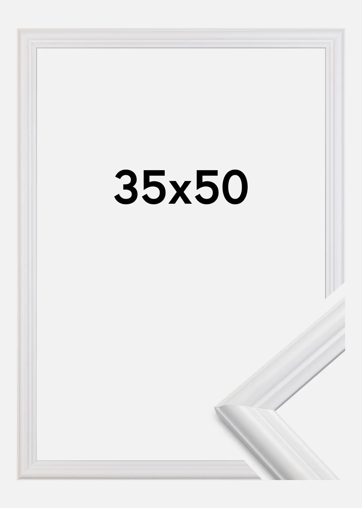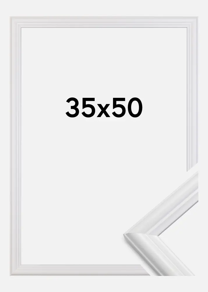 Le cadre Siljan blanc 8B est doté d'une bordure en bois profilée classique peinte en blanc.