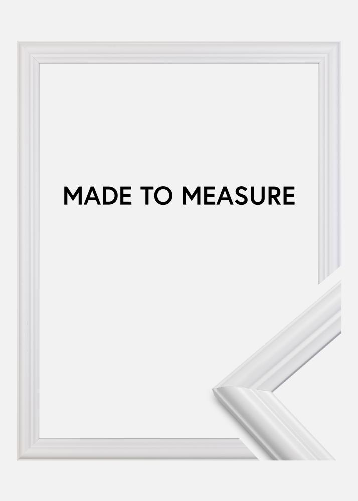 Cadre Siljan blanc 8B - Le format de votre choix est fabriqué dans notre propre atelier. Ce cadre est doté d'une bordure en bois profilée classique complètement blanche.