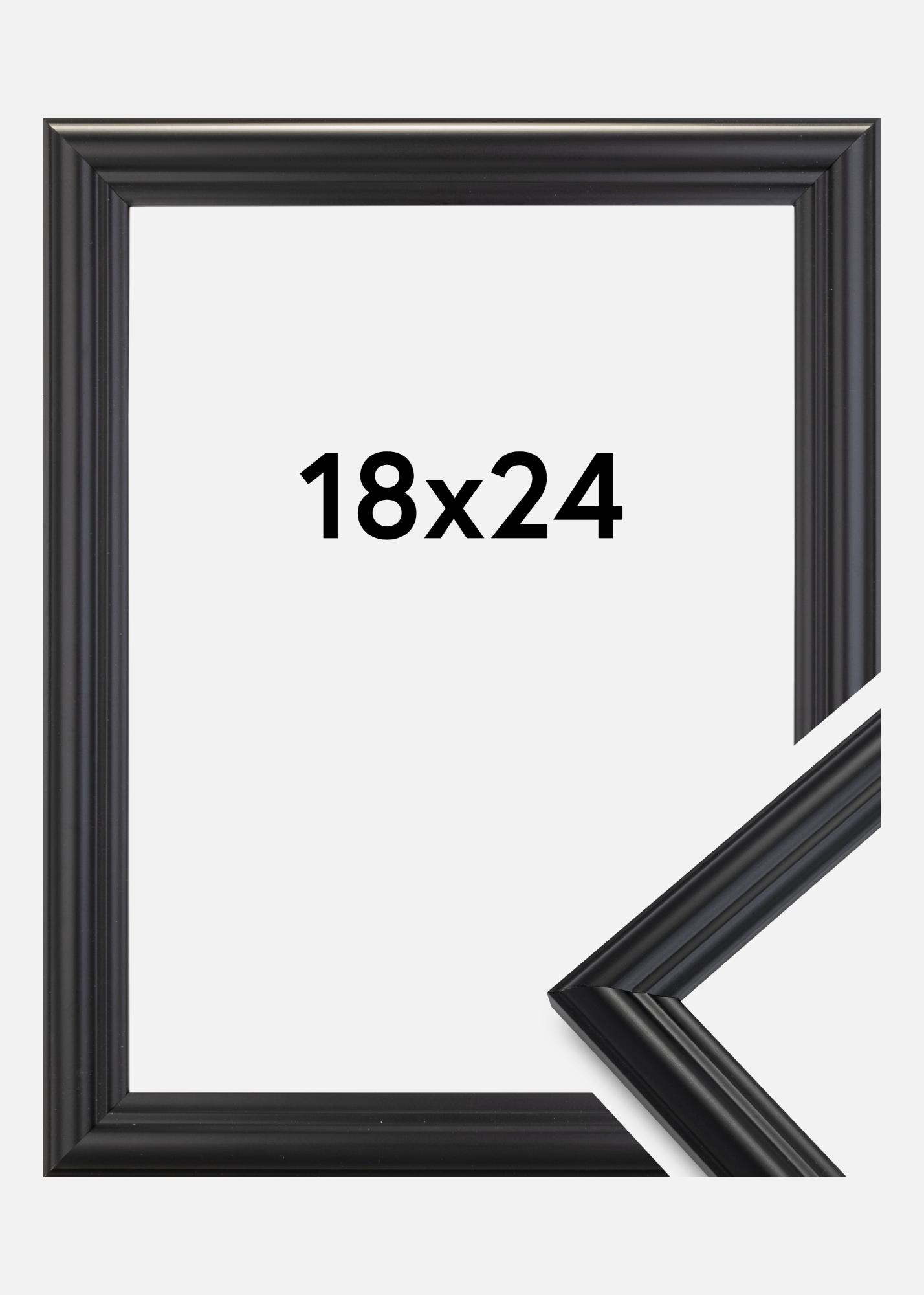 Le cadre Siljan noir 8C a une bordure en bois profilée classique de couleur noire mate.