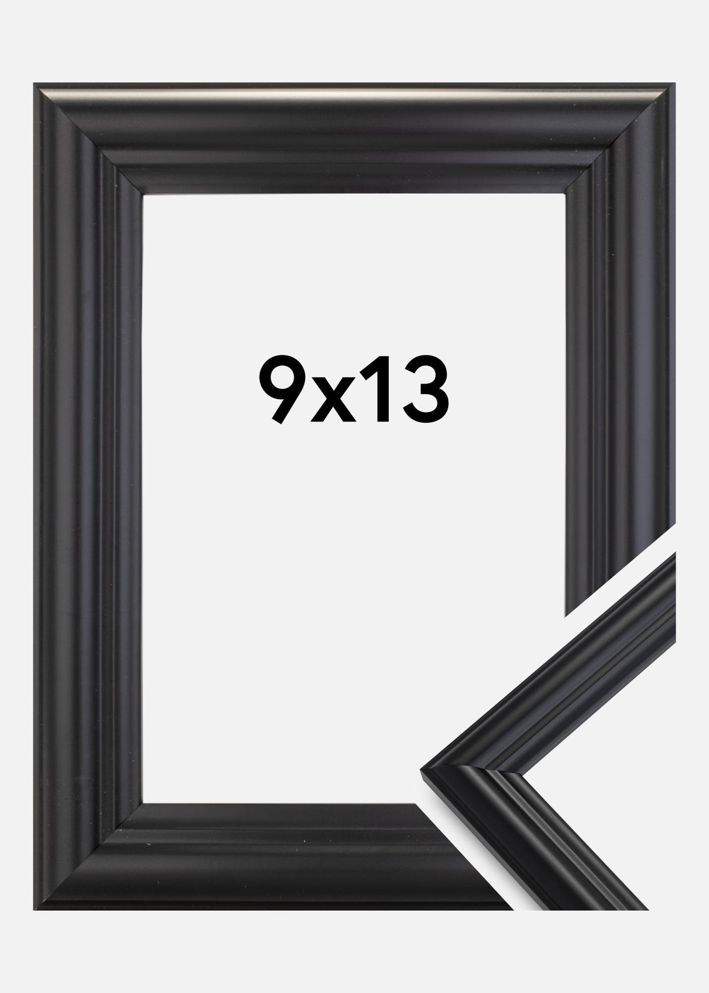Le cadre Siljan noir 8C a une bordure en bois profilée classique de couleur noire mate.