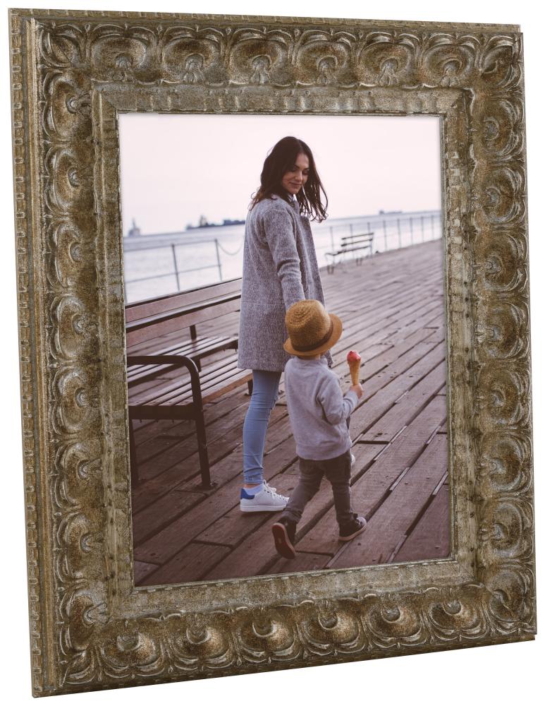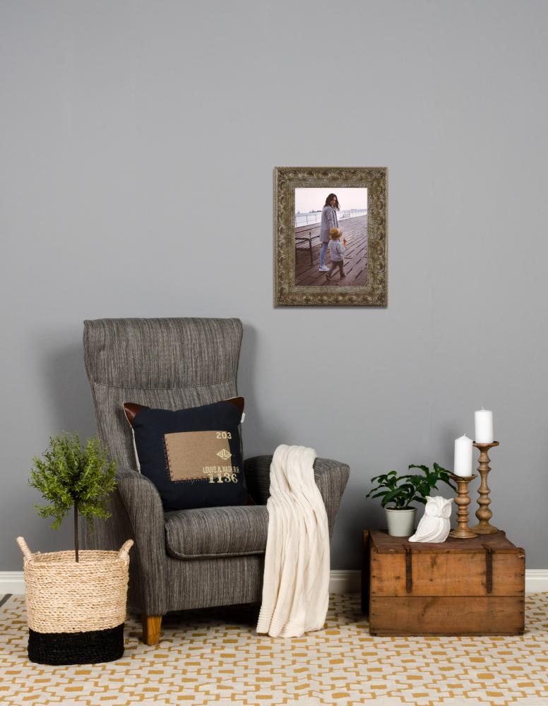 Cadre Skokloster Argent est un cadre photo élégant et intemporel fabriqué dans notre propre atelier d'encadrement. Avec sa finition argentée antique et son profil classique orné, ce cadre offre une sensation rustique et sophistiquée qui s'intègre parfaitement dans les styles de décoration traditionnels. La décoration détaillée et la surface patinée confèrent au cadre un caractère unique qui rehausse n'importe quelle pièce.