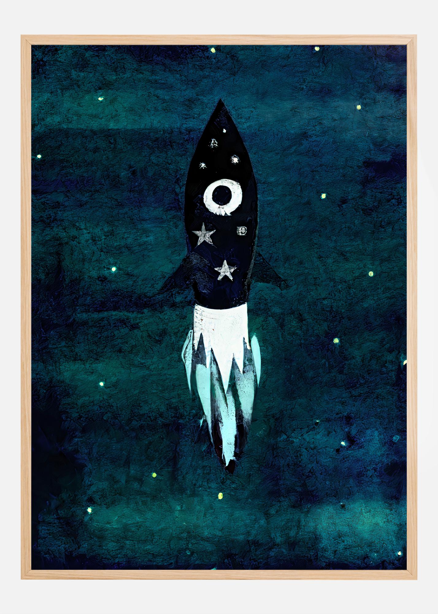 Mettez en valeur une imagination étoilée avec cette affiche, qui représente une fusée en exploration à travers un cosmos éclatant de couleurs. Le fond bleu profondément saturé est parsemé de points lumineux ressemblant à des étoiles, donnant l'illusion d'un espace infini. La fusée elle-même, décorée de petites étoiles argentées et de la lune, devient un symbole du rêve de l'humanité de voyages spatiaux et d'exploration de l'inconnu.
