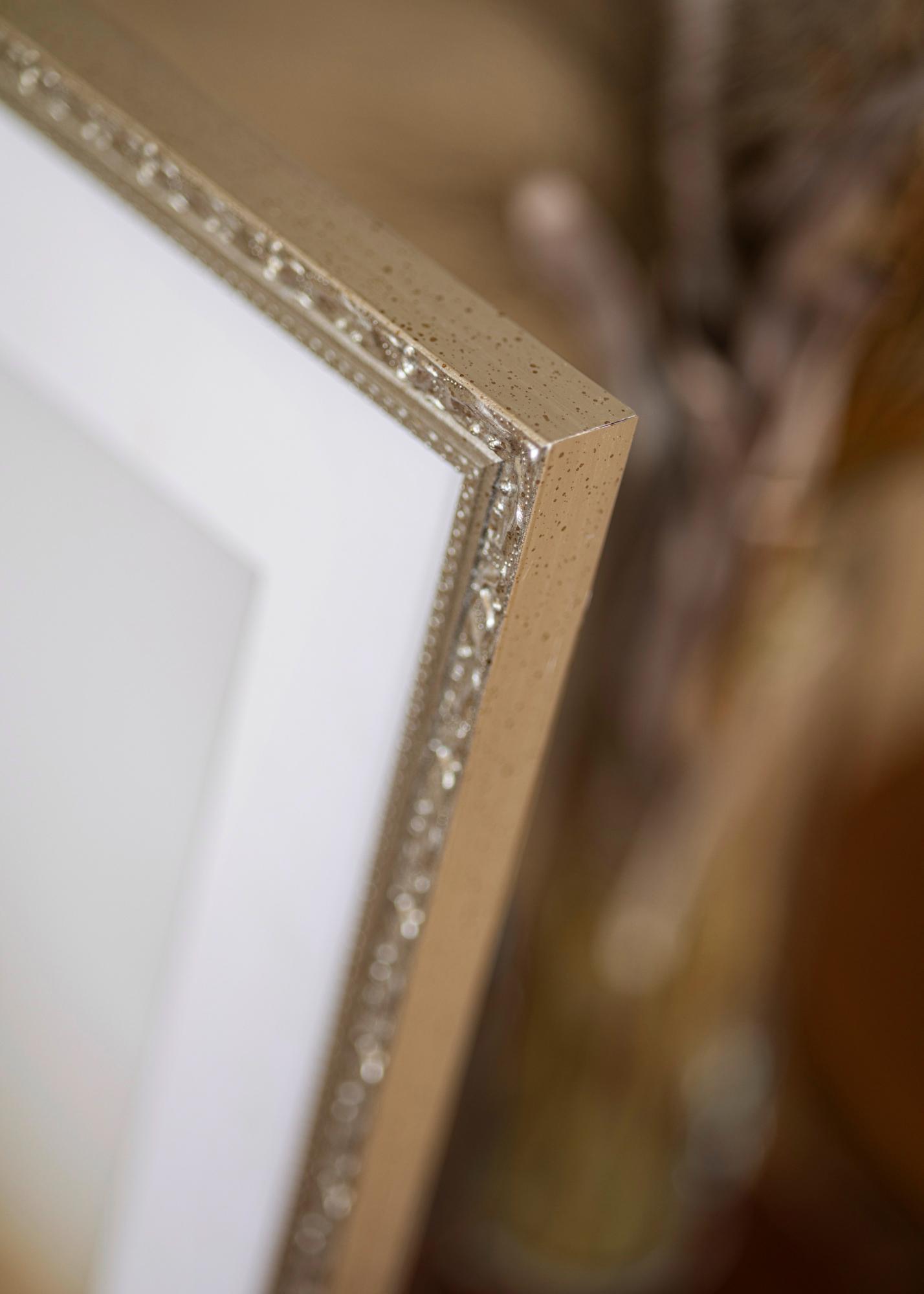 Élégant cadre argenté d'inspiration rétro de haute qualité et au design exclusif, fabriqué en Italie. Rehausse vos plus belles photos, en particulier en association avec un passe-partout (non inclus)